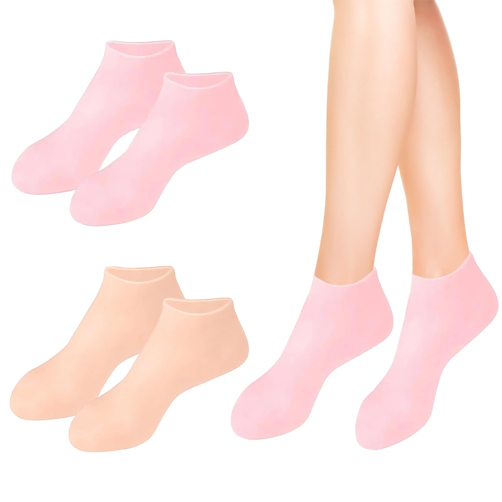 : Introducing our Silicone Moisturizing Socks 2pairs(pink and skin color), designed to provide effective foot care. These silicone socks for women effectively remove cracked feet while exfoliating and moisturizing the skin. Experience the restoration of smooth and elastic skin, especially during the cold winter months. Say goodbye to dry, cracked, and rough feet with our silicone socks for women. Our silicone moisturising socks offer great elasticity, providing a super soft and stretchy fit. They are designed with a non-slip bottom, ensuring a lightweight and comfortable wearing experience. The silicone moisturising sockscan be stretched to fit most women, offering a snug and secure fit for optimal foot care. Enhanced with non-slip dots on the bottom, these silicone socks provide better grip, improved stability, and balance. Feel confident in controlling your body movements, avoiding unnecessary falls and injuries. Using our silicone socks is easy. Simply apply lotion or cream to your feet and wear the silicone socks to extend and enhance the effect. Experience relief from dry, cracked, and rough skin as our socks work their magic. Your feet will feel soft and beautiful after each use. These silicone socks for cracked feet are not limited to foot care alone. They serve multiple purposes due to their waterproof and sandproof nature. Use them as beach waterproof socks, home floor socks, and more. Protect your feet from the outside world while enjoying the comfort and benefits of our silicone socks for cracked feet. Product Details: Quantity: Pack of 2pairs Silicone Socks Great Elasticity for a Comfortable Fit Non-slip Design for Improved Stability Easy-to-use Foot Care Solution Multi-purpose Usage Experience effective foot care with our Silicone Socks. Say goodbye to cracked feet and hello to smooth, beautiful skin.Multi-purpose Use: Waterproof and sandproof, these high-elasticity silicone socks for women are not only suitable for foot care but also serve multiple purposes. Use them as beach waterproof socks, home floor socks, and more to protect your feet from the outside world. Easy to Use: Simply apply lotion or cream to your feet and wear these silicone socks for cracked feet to extend and enhance the effect. Easily relieve dry, cracked, and rough skin, leaving your feet soft and beautiful. Non-slip Design: Enhanced with non-slip dots on the bottom, these silicone socks offer better grip, improved stability, and balance. Control your body movements with confidence, avoiding unnecessary falls and injuries. Great Elasticity: Our super soft and stretchy silicone socks for women provide a lightweight and comfortable wearing experience. With a non-slip bottom, they can be stretched to fit most women, ensuring a snug and secure fit. Effective Foot Care: These silicone moisturising socks effectively remove cracked feet, exfoliate and moisturize the skin. Restore smooth and elastic skin, especially during cold winter months. Say goodbye to dry and rough feet.
