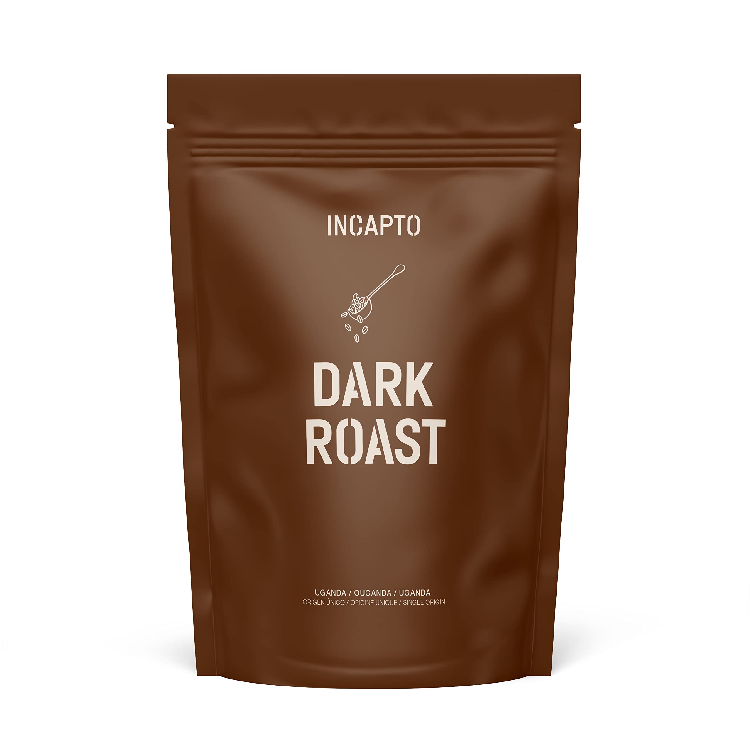 Incapto Dark Roast Coffee Beans - High Caffeine | Uganda Origin | 100% Robusta | Dark and Artisanal Roast | Bujanga Estate Victoria Lake | Very Strong Espresso | 500g Pack
