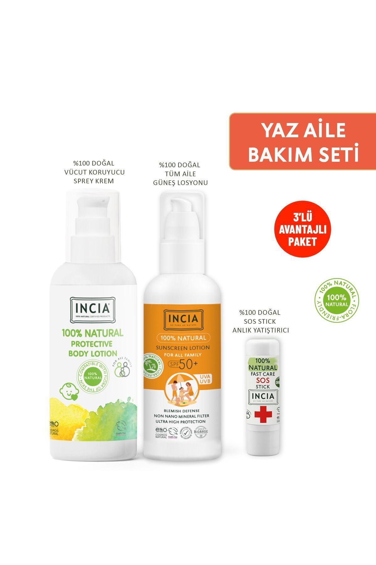 INCIA 100 Dogal Yaz Aile Bakim Seti Içerigi: