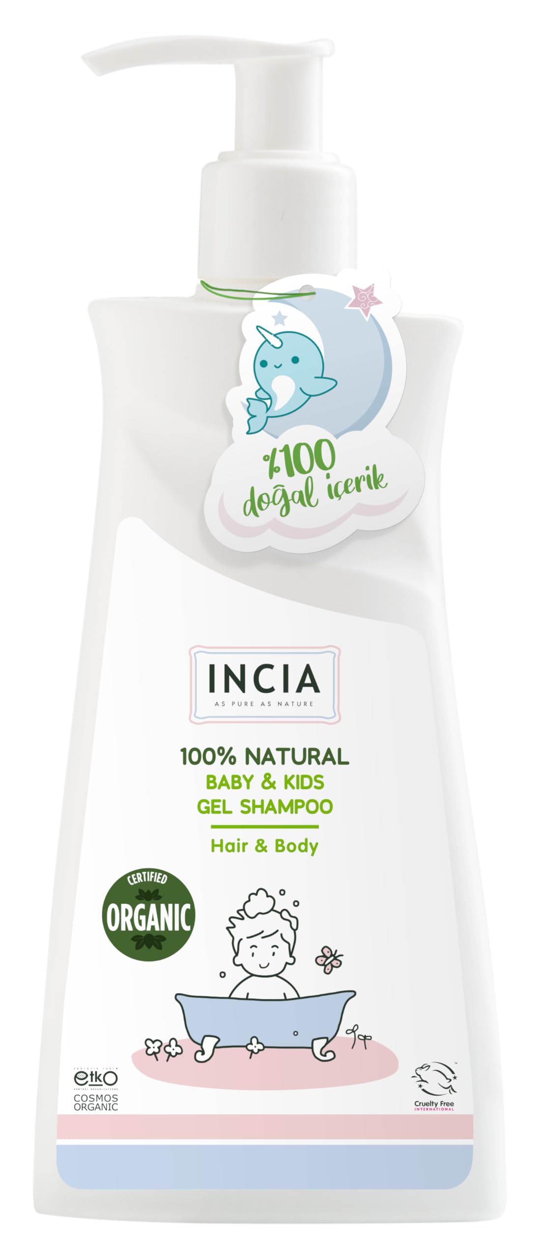 NCIA 100 Natural Baby Shampoo is suitable for babies' sensitive scalps and entire bodies. Its gel formula provides gentle and thorough cleansing without irritating babies' delicate skin and eyes, thanks to its moderate surfactant complex. It rinses easily. It helps reduce flaking by regulating sebum production with wintergreen extract, while also protecting against cradle cap. Galactoarabinan, a polysaccharide derived from black pine, reduces transepidermal water loss, forms a protective film on the skin, and keeps it moisturized for longer. The unique scent of lavender oil provides babies with a more peaceful and happy bath time. It is hypoallergenic and preserves the skin's natural pH balance. All the oils in INCIA 100 Natural Baby Shampoo are cold-pressed. It has been dermatologically proven that these ingredients are compatible with the skin's natural flora. INCIA 100 Natural Baby Body Hair Shampoo Gel contains no synthetic dyes or fragrances. It does not contain silicone-type chemicals that prevent your baby's scalp from receiving oxygen. The scent of INCIA 100 Natural Baby Shampoo comes from the natural oils it contains, not artificial fragrances, and its color comes from the natural color of the vegetable oils. Its natural and pleasant fragrance comes from lavender oil. Contains wintergreen extract, galactoarabinan, and lavender oil. Does not contain SLES, SLS, sulfates, parabens, paraffin, silicone, PEG, EDTA, synthetic fragrances, or dyes. Directions: Apply directly to your baby's wet hair or body using a soft bath sponge and lather with circular motions. Rinse thoroughly with water. Store at room temperature (25 C). FOR EXTERNAL USE ONLY. KEEP OUT OF REACH OF CHILDREN. AVOID CONTACT WITH EYES. IF PRODUCT GETS INTO EYES, RINSE THOROUGHLY. AQUA, ALOE BARBADENSIS LEAF JUICE, DECYL GLUCOSIDE, GLYCERIN, LAURYL GLUCOSIDE, XANTHAN GUM, GALACTOARABINAN, GAULTHYL CITRATE, CINNAMOMUM CASSIA EXTRACT, GLYCERYL CAPRYLATE, LAVANDULA ANGUSTIFOLIA HERB OIL, ETHYL COCOYL ARGINATE, DIHEPTYL SUCINATE, CAPRYLOYL GLYCERIN SEBACIC ACID COPOLYMER, SODIUM CITRATE, CITRIC ACID. INGREDIENTS AQUA, ALOE BARBADENSIS LEAF JUICE, DECYL GLUCOSIDE, GLYCERIN, LAURYL GLUCOSIDE, DIHEPTYL SUCINATE, CAPRYLOYL GLYCERIN SEBACIC ACID COPOLYMER, SODIUM CITRATE, CITRIC ACID SAFETY WARNING Keep at room temperature (25 C). FOR EXTERNAL USE ONLY. KEEP OUT OF REACG OF CHILDREN. AVOID CONTACT WITH EYES. IF EYE CONTACT OCCURS, RINSE THOROUGHLY. See moreIt contains no synthetic fragrances, alcohol, or dyes that can harm children's sensitive skin. Thanks to its gentle surfactant complex, it provides excellent cleansing without irritating your child's delicate skin. Incia 100 Natural Children's Gel Shampoo contains PREALLNAT and special preservatives. It offers perfect cleansing with a soft, silky feel on your child's sensitive skin. INCIA 100 Natural Children's Gel Shampoo with PREALLNAT, which contains wintergreen extract, galactoarabian, capryloylglycine, and lavender oil, is made from entirely natural ingredients thanks to the patent protection of PREALLNAT. 100 natural patented ingredients for children's sensitive skin.INCIA,100 Naturel Certifié Biologique Gel Shampooing Bébé et Enfant Cheveux Corps Lavande Anti-Cone 350 mlDESCRIPTION DU PRODUIT DESCRIPTION DU PRODUIT Le shampooing 100 naturel pour bébés NCIA convient au cuir chevelu sensible des bébés et à l'ensemble du corps. Il se présente sous forme de gel et permet un nettoyage doux et parfait sans agresser la peau sensible et les yeux des bébés grâce à son complexe tensioactif modéré. Il se rince facilement. Il aide à réduire la formation de squames chez les bébés en régulant le sébum grâce à l'extrait de gaulthérie, tout en assurant une protection contre la formation de croûtes de lait. Le galactoarabinan, un polysaccharide obtenu à partir du pin noir, réduit la perte d'eau transépidermique, forme un film protecteur sur la peau et assure que la peau reste humide pendant longtemps. Le parfum unique de l'huile de lavande procure au bébé une expérience de bain plus paisible et plus heureuse. Elle est hypoallergénique et préserve l'équilibre naturel du pH de la peau. Toutes les huiles contenues dans le shampooing pour bébés INCIA 100 naturel sont produites par pression à froid. Il a été prouvé dermatologiquement qu'elles sont compatibles avec la flore naturelle de la peau. Le shampooing gel pour le corps et les cheveux INCIA 100 naturel pour bébé ne contient pas de colorants ou de parfums synthétiques. Il ne contient pas de produits chimiques de type silicone qui empêchent le cuir chevelu de votre bébé de recevoir de l'oxygène. Le parfum du shampooing pour bébés INCIA 100 naturel provient des huiles naturelles qu'il contient, et non de parfums artificiels, et sa couleur provient de la couleur naturelle des huiles végétales. Son parfum naturel et agréable provient de l'huile de lavande. Contient de l'extrait de gaulthérie, du galactoarabinane et de l'huile de lavande Ne contient pas de SLES, SLS, sulfate, parabène, paraffine, silicone, PEG, EDTA, parfum et colorant synthétiques Utilisation Appliquez directement sur les cheveux mouillés de votre bébé, ou sur son corps à l'aide d'une éponge de bain douce, et faites mousser en effectuant des mouvements circulaires. Rincer abondamment à l'eau. Conserver à température ambiante (25 C). À USAGE EXTERNE UNIQUEMENT. TENIR HORS DE PORTÉE DES ENFANTS. ÉVITER LE CONTACT AVEC LES YEUX. EN CAS DE CONTACT AVEC LES YEUX, RINCER ABONDAMMENT. AQUA, ALOE BARBADENSIS LEAF JUICE, DECYL GLUCOSIDE, GLYCERIN, LAURYL GLUCOSIDE, XANTHAN GUM, GALACTOARABINAN, GAULTHYL CITRATE, CINNAMOMUM CASSIA EXTRACT, GLYCERYL CAPRYLATE, LAVANDULA ANGUSTIFOLIA HERB OIL, A ETHYL COCOYL ARGINATE, DIHEPTYL SUCINATE, CAPRYLOYL GLYCERIN SEBACIC ACID COPOLYMER, SODIUM CITRATE, CITRIC ACID. INGRÉDIENTS AQUA, ALOE BARBADENSIS LEAF JUICE, DECYL GLUCOSIDE, GLYCERIN, LAURYL GLUCOSIDE, XANTHAN GUM, GALACTOARA