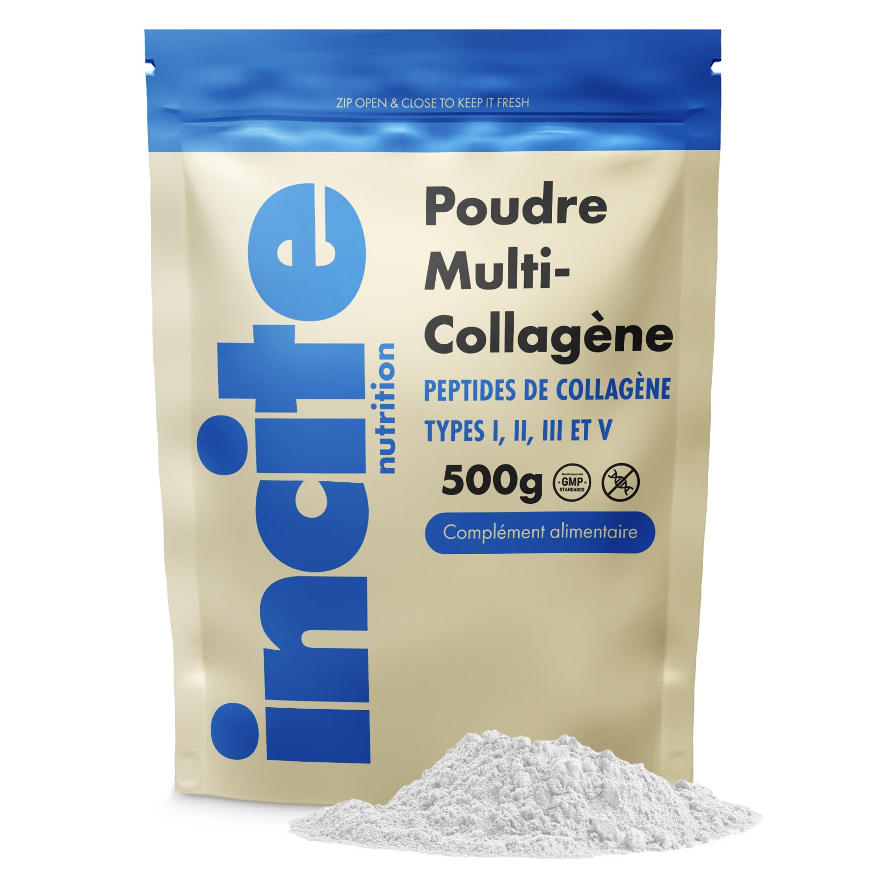 We care about you: Everyone reacts differently to supplements. If our collagen doesn't meet your expectations or you're not satisfied, contact Incite Nutrition. We value our customers' experience. Easy to consume: Add 1 scoop (13g) to your coffee, tea, juice, or smoothie to incorporate this protein powder into your daily routine. Our unflavored powder has a neutral taste and blends well with your favorite recipes. Prevention and protection: Your health is a long-term investment. Being proactive is important for your well-being, especially with an active lifestyle. Non-GMO product meeting the highest standards for better protection. Health benefits: Collagen is a key protein for skin, joints, bones, hair, nails, and muscle recovery. Taking marine collagen powder helps maintain collagen levels as we age. Multi-collagen source: Our collagen powder provides a reliable supply of type 2, 3, 5 and 1 collagen, sourced from bovine collagen peptides, chicken collagen, marine collagen peptide and eggshell membrane extracts.Nous prenons soin de vous : Chacun réagit différemment aux compléments. Si notre collagène ne répond pas à vos attentes ou si vous n'êtes pas satisfait, contactez Incite Nutrition. Nous accordons de l'importance à l'expérience de nos clients. Facile à consommer : Ajoutez-en 1 cuillère (13 g) dans votre café, thé, jus ou smoothie pour incorporer cette proteine poudre dans votre routine quotidienne. Notre poudre non aromatisée a un goût neutre et se mélange bien avec vos recettes préférées. Prévention et protection : Votre santé est un investissement à long terme. Être proactif est important pour votre bien-être, surtout avec un mode de vie actif. Produit non-OGM répondant aux standards les plus élevés pour une meilleure protection. Avantages pour la santé : Le collagène est une protéine clé pour la peau, les articulations, les os, les cheveux, les ongles et la récupération musculaire. Prendre du collagène marin poudre aide au maintien des niveaux de collagène avec l'âge. Source multi-collagène : Notre collagene poudre fournit un apport fiable en collagene type 2, 3, 5 et 1, provenant de peptides de collagene bovin, de collagène de poulet, de peptide de collagene marin et d'extraits de membrane de coquilles d'œufs.Incite Nutrition Multi Collagène Poudre Non Aromatisée 500 g. Source de Collagene Types 1, 2, 3 et 5. Complément pour la Peau, les Articulations, les Os, les Cheveux et la Récupération Musculaire. 500 g (Lot de 1)