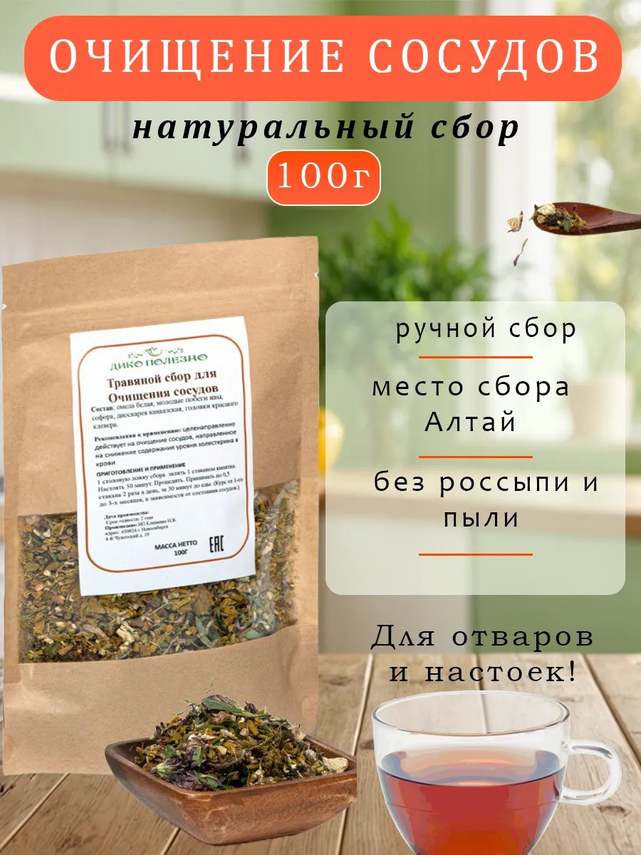 | Назначение травяного сбора | очищения кровеносных сосудов |
