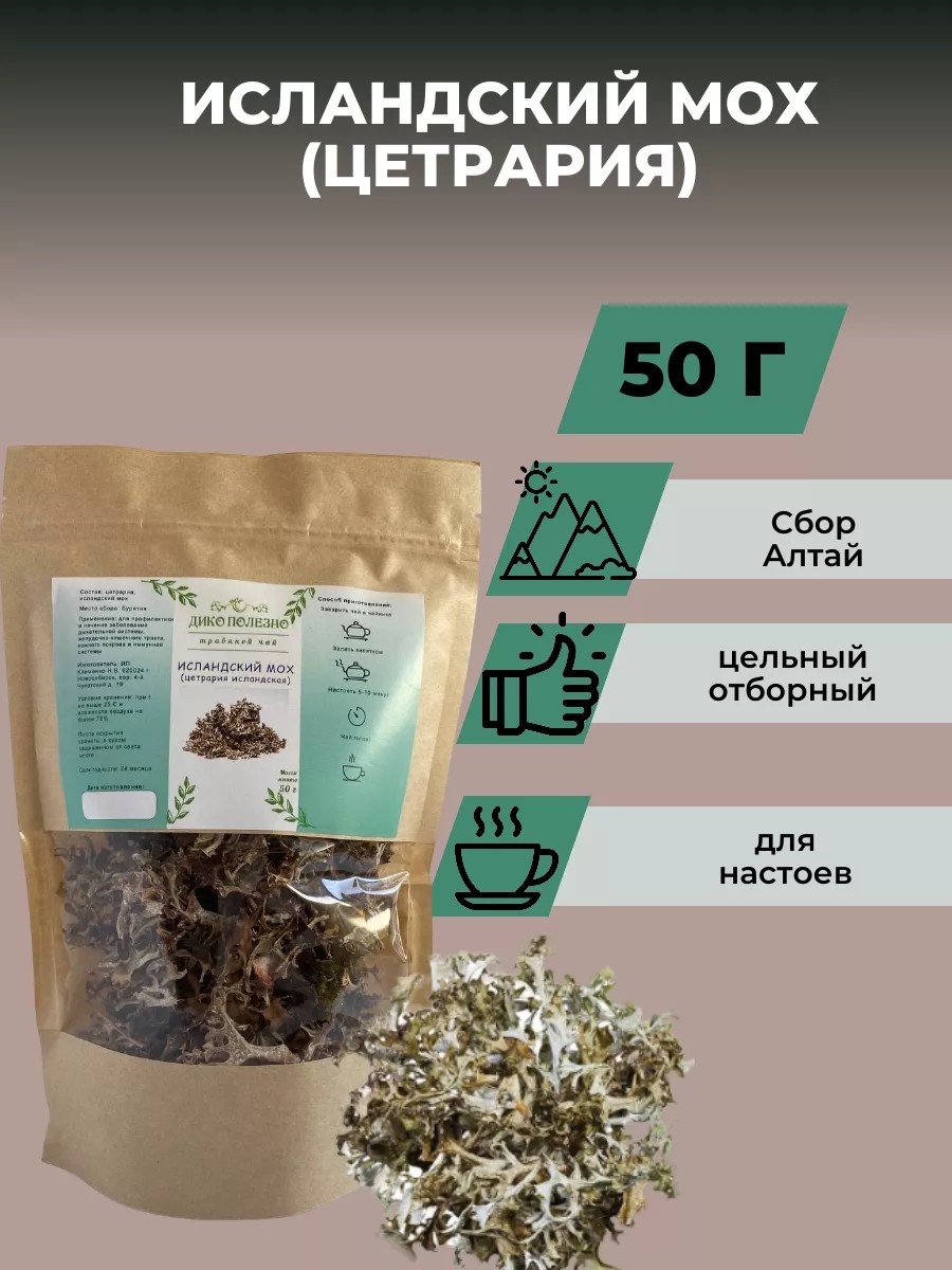 Исландский мох (цетрария исландская) применяется при заболеваниях верхних дыхательных путей, избавляет даже от сильного и затяжного кашля, выводит мокроту из легких, облегчает дыхание,; хронических инфекционных заболеваниях сопровождающихся повышением температуры, при туберкулезе. Исландский мох цетрария природный антибиотик, применяется при заболеваниях желудочно-кишечного тракта (ЖКТ) Также мох помогает лицам с кожными заболеваниями, для лечения псориаза, дерматита, аллергических реакций или ожогов. Благодаря ранозаживляющим свойствам растение применяют для лечения гастрита, язвы желудка, при воспалении десен и нарушениях слизистых оболочек.