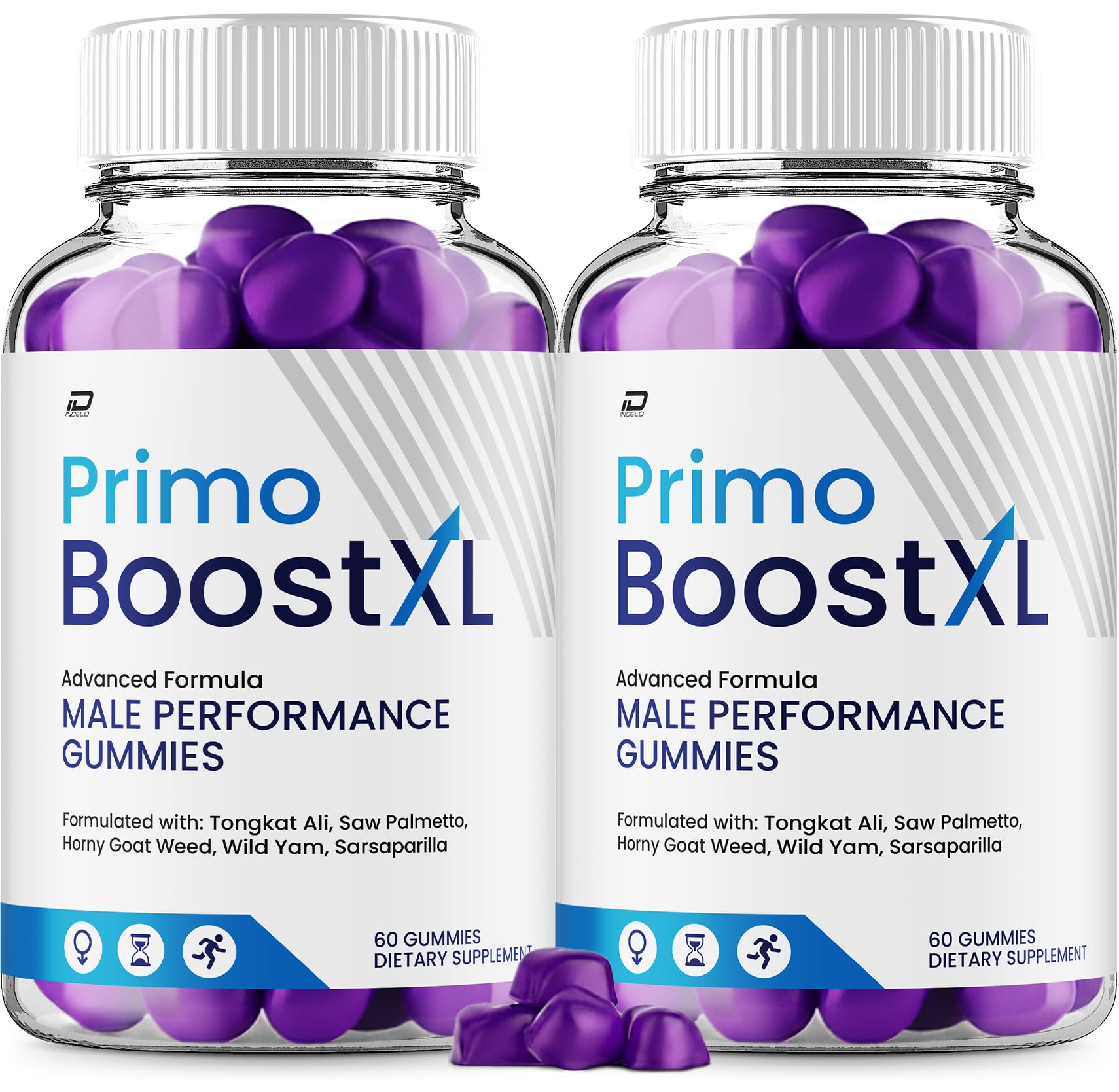 Manufactured in United States. Primo Boost Natural Ingredients. 60 Gummies Per Bottle. PrimoBoost XL Gummy. Primo Boost XL Advanced Formula.