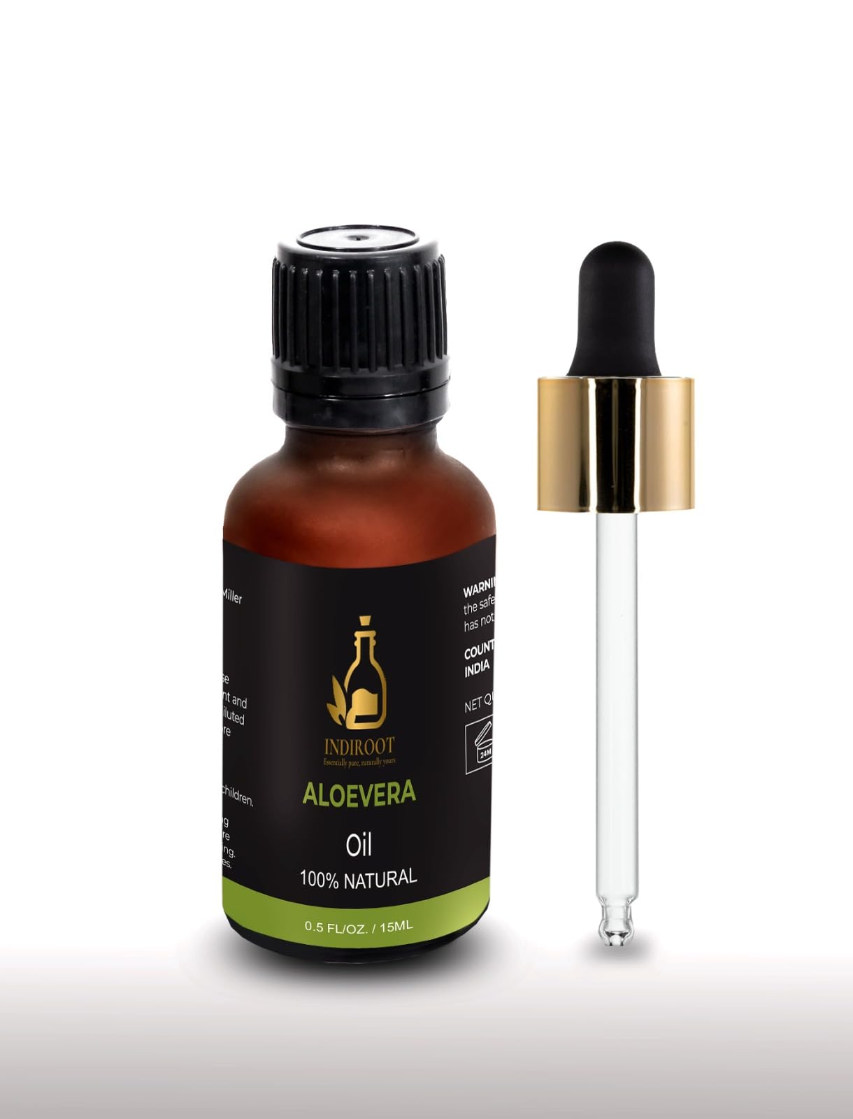 Indiroot Pure Aloevera Oil 100% Natural Essential Oil with Dropper (0.5 fl oz/15ml Aloe Vera)