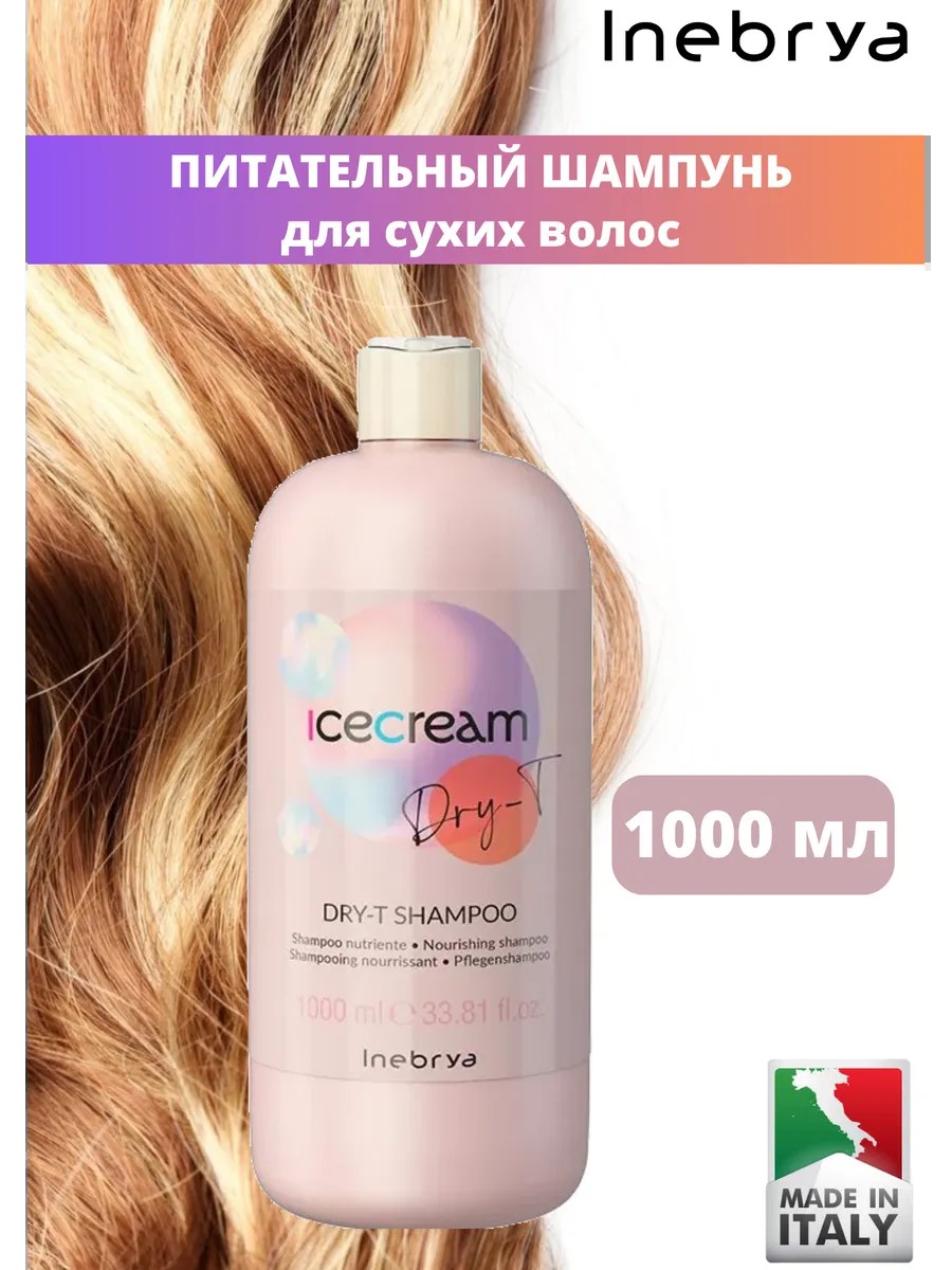 Питательный шампунь для сухих, пористых и обработанных волос Ice Cream Dry-T 1000 мл - это профессиональный уход за Вашими волосами. Шампунь отлично подходит для увлажнения и восстановления сухих и пористых волос. Шампунь укрепляет и питает волосы, восстанавливая необходимый уровень влаги поврежденных волос. Идеально подходит для сухих, очень сухих, вьющихся, трудно расчесываемых, склонных к секущимся кончикам, а также волос, подвергавшихся легкой химической обработке или частому использованию горячих инструментов для укладки, вызывающих сухость и потерю блеска. Придает волосам мягкость и облегчает расчесывание, делая их шелковистыми и сияющими. Придает объем и блеск. Обладает веганской формулой, без силиконов, SLES и SLS. Содержит 95% натуральных ингредиентов. Шампунь для волос мужской и женский восстанавливает блеск, придает плотность, жизненную силу и красоту сухим и вьющимся волосам, подвергшихся легкой химической обработке или воздействию высоких температур инструментов для укладки. Шампунь представлен в выгодном объеме 1000 мл.