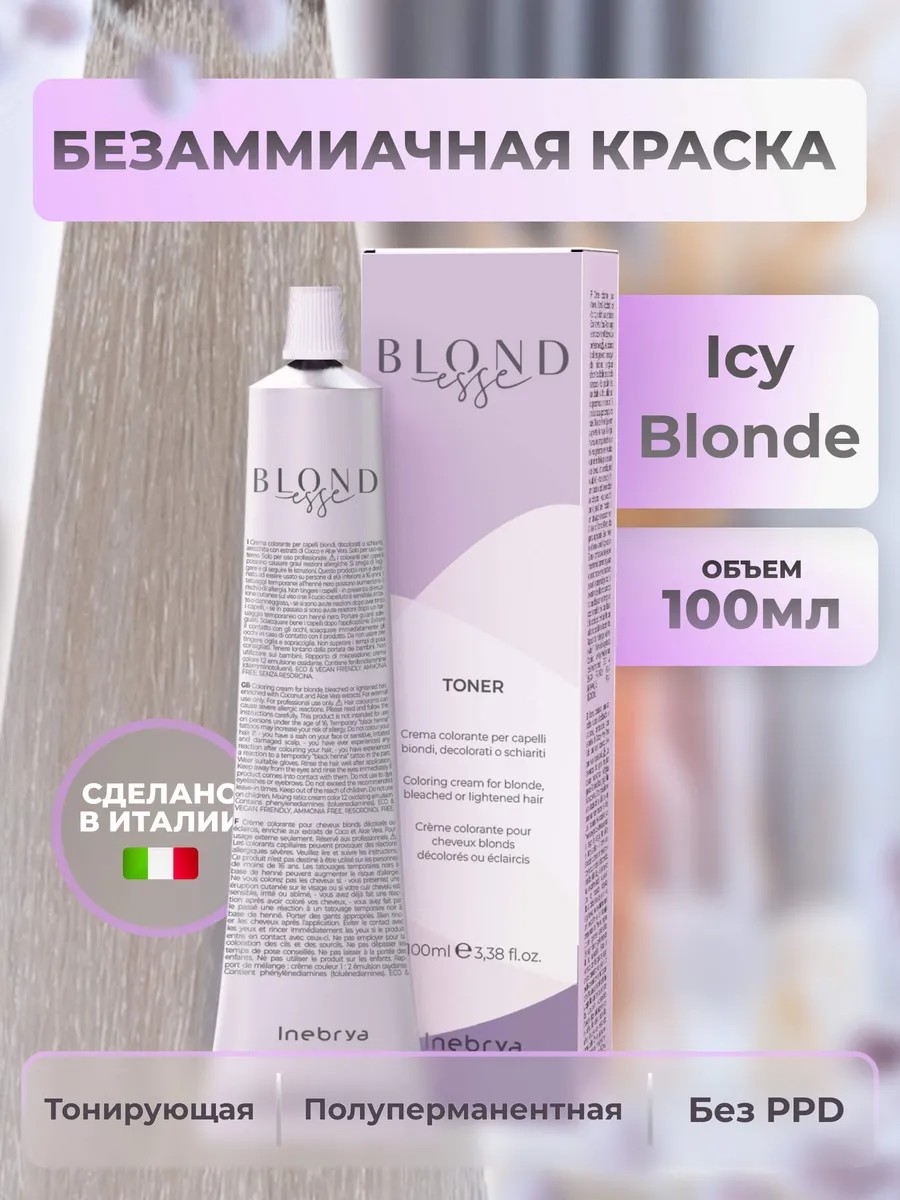 Представляем Inebrya Краска для волос тонирующая Icy Blonde — идеальное средство для создания безупречного образа без аммиака. Эта тонирующая краска для волос станет вашим верным спутником в мире красоты, позволяя легко добиться желаемого оттенка и сохранить здоровье ваших волос. С помощью оттеночной краски вы сможете создать потрясающий холодный блонд с легким жемчужным отливом. Идеально подходит для тех, кто ищет безаммиачное тонирование, Inebrya предлагает формулу, которая бережно относится к структуре волос и обеспечивает стойкий результат. Безаммиачная белая краска позволяет наслаждаться яркими оттенками без вреда для здоровья локонов. Тонировка от Inebrya — это не просто окрашивание, а искусство, которое поможет подчеркнуть вашу индивидуальность. С ее помощью вы сможете легко закрасить корни и обновить цвет, придавая волосам сияние и живость. Крем краска равномерно распределяется по всей длине, обеспечивая идеальное покрытие и глубокое питание. Выбирая Inebrya, вы получаете не просто краситель, а комплекс ухода - она дарит локонам мягкость и блеск, а также помогает предотвратить повреждения. Серебристые и пепельные оттенки делают ваш образ свежим, а холодный платиновый тон придаст уверенности в любой ситуации. Уникальная формула тонирующей краски не только окрашивает волосы, но и заботится о них. Она идеально подходит для закрашивания корней, позволяя поддерживать ухоженный вид между посещениями салона. С "Inebrya" легко добиться желаемого светлого тона, будь то светлый блонд, серебро или бежевый блондин. Преобразите свой образ с итальянской проф краской для волос Inebrya - позвольте себе быть яркой и стильной! Применение: Смешайте в неметаллической миске краситель Blondesse и окислитель 2,1% или 3% в пропорции 1:2. Нанесите на чистые влажные или сухие волосы. Время выдержки 5-15 минут. Для ухода за волосами рекомендуется использовать продукты линии Блондесс.
