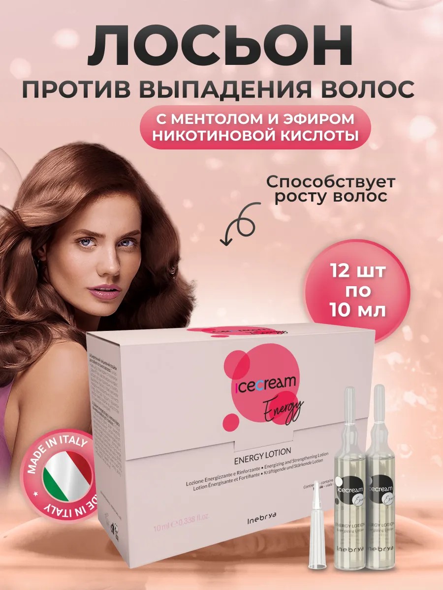 Лосьон для роста и против выпадения волос в ампулах Inebrya Energy - это бустер, который поможет укрепить ваши волосы и стимулировать их рост. Концентрат от выпадения волос содержит активные компоненты, которые питают и укрепляют структуру волоса. Никотиновая кислота известна мощными стимулирующими свойствами, активно воздействует на фолликулы, укрепляя их и стимулируя быстрый рост волос. Inebrya Energy lotion - это эффективный активатор и стимулятор роста волос на голове, особенно при алопеции (облысении) у мужчин или женщин. Он содержит целый комплекс питательных веществ, включая крапиву, розмарин, соевые протеины, ментол, никотиновый эфир и кораллину, которые насыщают фолликулы полезными компонентами и способствуют их укреплению. Cредство улучшает кровообращение, что является ключевым фактором для густоты волос. Лосьон для кожи головы представлен в ампулах с оптимальной дозировкой и легко наносится и не требует смывания, обеспечивая несмываемый уход за волосами. Регулярное использование сыворотки поможет укрепить волосы, сделать их более густыми и здоровыми. Это идеальное решение для тех, кто хочет иметь красивые, густые и сильные волосы. Способ применения: нанести на чистую кожу головы. Распределить активными массирующими движениями. Не смывать. Возможна кратковременная реакция в виде покраснения и неприятного ощущения на коже. Состав: Aqua (Water), Alcohol Denat., Propylene Glycol, Menthol, PEG-40 Hydrogenated Castor Oil, Parfum (Fragrance), Phenoxyethanol, Hydrolyzed Soy Protein, Methyl Nicotinate, Methylparaben, Rosmarinus Officinalis Leaf Extract (Rosmarinus Officinalis (Rosemary) Leaf Extract), Ethylparaben, Butylparaben, Tetrasodium EDTA, Urtica Dioica Extract (Urtica Dioica (Nettle) Extract), Sorbic Acid, Propylparaben, Hydrolyzed Corallina Officinalis Extract, Ethylhexylglycerin, Limonene, Simethicone, Sodium methylparaben, Evernia Furfuracea Extract (Evernia Furfuracea (Treemoss) Extract), Evernia Prunastri Extract (Evernia Prunastri (Oakmoss) Extract).
