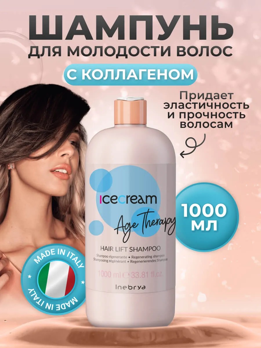 Профессиональный шампунь для молодости волос женский Inebrya Age Therapy — профессиональное средство для очищения и поддержания красоты волос. Хотите, чтобы ваши волосы выглядели здоровыми и блестящими? Тогда вам нужен профессиональный шампунь, который восстановит их структуру и вернёт молодость. Наш восстанавливающий шампунь — это идеальное решение для сухих и повреждённых волос. Он содержит натуральные ингредиенты, которые питают и увлажняют волосы, делая их мягкими и шелковистыми. Шампунь также помогает восстановить блеск и эластичность волос, придавая им здоровый вид. Шампунь для волос профессиональный подходит для всех типов волос, особенно для пористых и сухих. Он бережно очищает волосы и кожу головы, не пересушивая их. После применения очищающего шампуня волосы становятся более послушными, легче укладываются и дольше сохраняют объём. Он имеет большой объем 1000 мл и станет вашим незаменимым помощником в уходе за волосами. Не упустите возможность попробовать наш профессиональный шампунь для восстановления волос Inebrya Age Therapy. Он станет вашим незаменимым помощником в уходе за волосами и подарит им здоровье и красоту. Состав: aqua, ammonium lauryl sulfate, sodium myreth sulfate, sodium cocoamphoacetate, sodium chloride, mipa-lauryl sulfate, glycol distearate, parfum, citric acid, guar hydroxypropyltrimonium chloride, laureth-10, cocamide mea, triethylene glycol, hexyl cinnamal, benzyl alcohol, limonene, propylene glycol, gossypium herbaceum seed oil, hydrolyzed collagen, sapphire powder, methylchloroisothiazolinone methylisothiazolinone, polyamide-2, magnesium chloride, magnesium nitrate, hydrolyzed elastin, pentylene glycol.