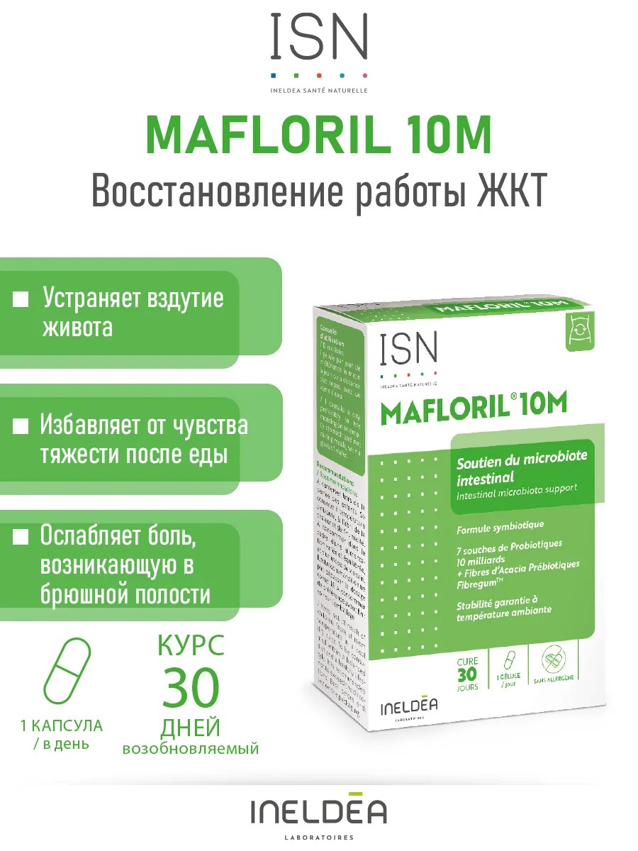 MAFLORIL 10M рекомендуется принимать по 1 капсуле в день для поддержания здоровой микрофлоры кишечника и улучшения общего состояния организма. Продукт изготовлен из натуральных ингредиентов высокого качества, что обеспечивает его эффективность и безопасность.