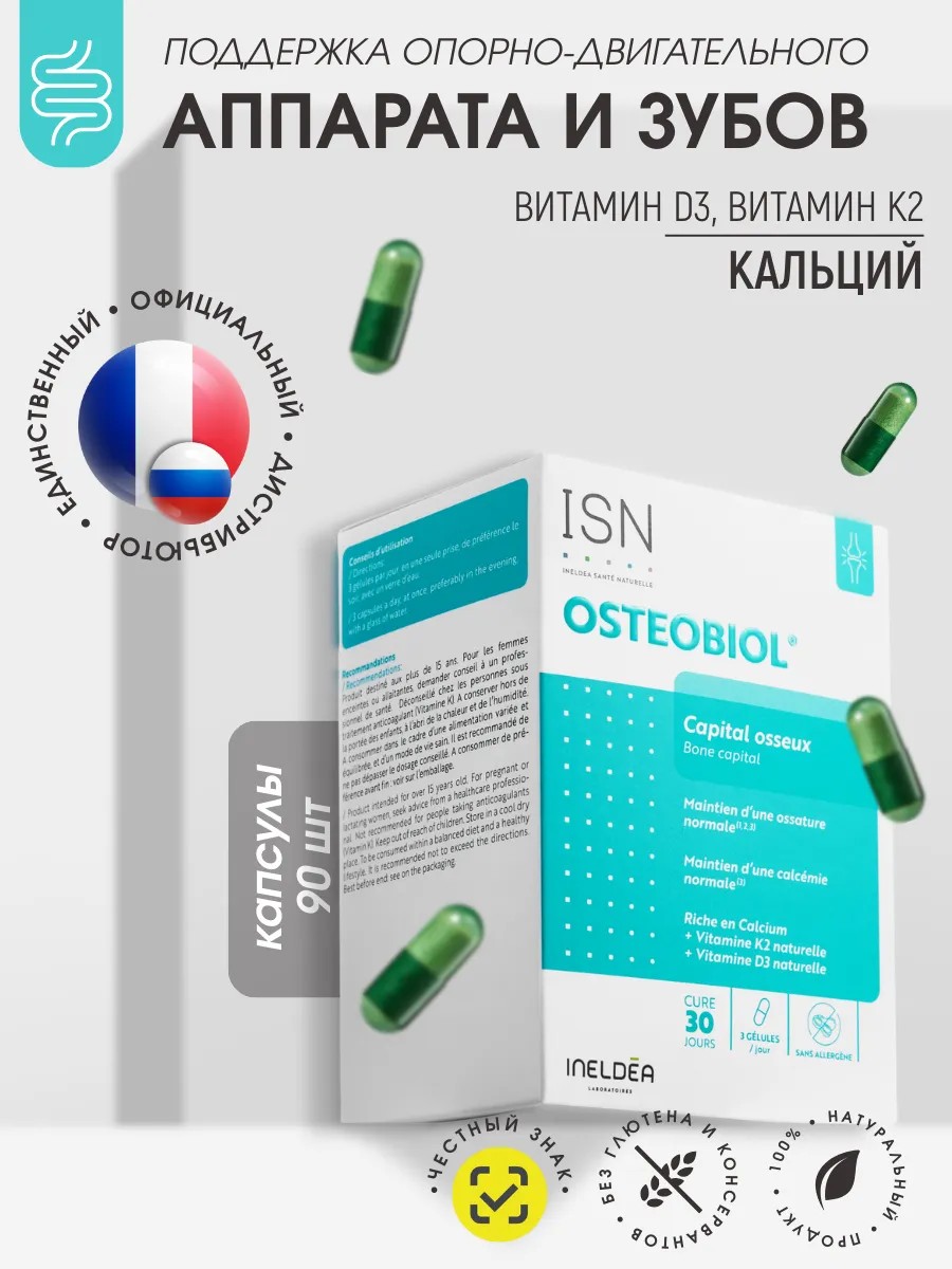 Кроме того, в составе Ineldea Sante Naturelle OSTEOBIOL Остеобиол присутствует витамин D, который необходим для усвоения кальция и поддержания здоровья костей, а также магний, который укрепляет костную ткань и способствует ее росту.