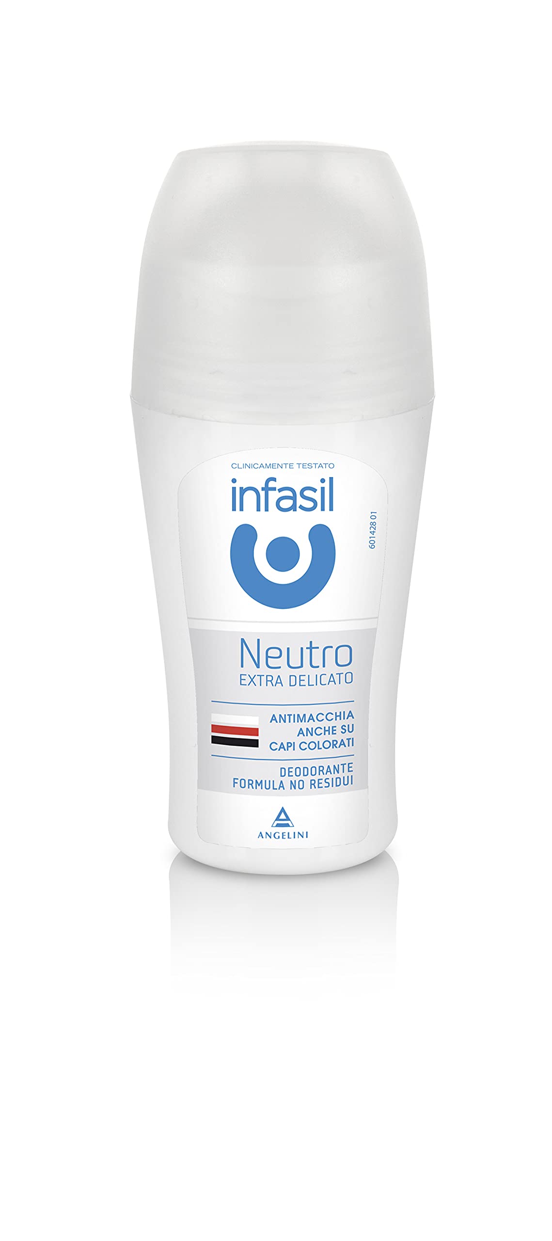 Infasil Extra Gentle Neutral Roll-On Deodorant, 50 ml. Infasil Extra Gentle Neutral deodorant controls odor and provides all-day freshness and a clean feeling. Its stain-resistant formula leaves no residue, is also effective on colored clothing, and combines the effectiveness against perspiration and odor with the gentleness of Infasil: for fresh, fragrant skin until evening. This product is aluminum-free, ideal for those who don't want to risk stains and marks on their clothes. Effective for up to 24 hours. The deodorant line with the iconic and essential Infasil fragrance. INGREDIENTS Aqua, PPG-15 stearyl ether, steareth-2, dipropylene glycol, steareth-20, parfum, diethylcone, triethyl citrate, phenoxyethanol, 2-methyl 5-cyclohexylpentanol, ethylhexylglycerin, panthenol, propylene glycol, hexyl cinnamal, dethylene glycol, bisphenol A, disodium EDTA, linalool, benzyl salicylate, limonene, citronellol, alpha-isomethyl ionone, cinnamyl alcohol, citral, geraniol, coumarin, amyl cinnamal, benzyl alcohol, isoeugenol, hydroxycitronellal, eugenol, benzyl benzoate DIRECTIONS Clean and dry the underarm area before applying. Apply a thin, even layer of deodorant to the underarm area using the roll-on applicator. Allow the deodorant to dry completely before dressing. Reapply as needed after physical activity for continued protection. See moreRecommended for those who prefer a gentler approach, as it leaves no residue on skin or clothing, unlike when using too little. Clinically tested: This product is clinically tested and gentle on the skin. EFFECTIVE FOR UP TO 24 HOURS: This product is effective for up to 24 hours, leaving skin feeling fresh and fragrant until evening. STAIN-RESISTANT FORMULA: This product has a stain-resistant formula and is free of aluminum salts, effective even on colored clothing. Ideal for those who don't want to risk stains or smears on their clothes. EXTRA DELICATE: Controls odors and provides a feeling of freshness and cleanliness all day long.Infasil Déodorant Roll On Neutro Extra Délicate, Formule anti-taches sans sels d'aluminium, efficace jusqu'à 24 h, 50 mlDESCRIPTION DU PRODUIT DESCRIPTION DU PRODUIT Infasil Déodorant Roll On Neutre extra délicat, 50 ml. Le déodorant Infasil Neutre Extra Délicat contrôle les odeurs et apporte une fraîcheur et une sensation de nettoyage tout au long de la journée. Sa formule anti-tache ne laisse pas de résidus, elle est aussi efficace sur les vêtements colorés et combine l'efficacité contre la transpiration et les mauvaises odeurs à la délicatesse d'Infasil : pour une peau fraîche et parfumée, jusqu'à soir. Il s'agit d'un produit sans sels d'aluminium, idéal pour ceux qui ne veulent pas risquer de taches et de traces sur les vêtements. Efficace jusqu'à 24 h. La ligne de déodorants avec le parfum historique et incontournable d'Infasil. INGRÉDIENTS Aqua, PPG-15 stearyl ether, steareth-2, dipropylène glycol, stéareth-20, parfum, diéthhicone, citrate de triethyl, phenoxyethanol, 2-methyl 5-cyclohexylpentanol, éthylhexylglycerin, panthenol, propylene glycol, hexyl cinnamal, déthylène. glycol, Bisab. olol, Disodium EDTA, Linalool, Benzyl salicylate, Limonène, Citronellol, Alpha-isomethyl ionone, Cinnamyl alcohol, Citral, Géraniol, Coumarin, Amyl Cinnamal, Benzyl Alcohol, Isoeugenol, Hydroxycitronellal, Eugenol, Benzyl benzoate MODE D'EMPLOI Nettoyez et séchez la zone sous les aisselles avant application. Appliquer une fine couche uniforme de déodorant sur la zone des aisselles en utilisant le roll-on. Laisser sécher complètement le déodorant avant de porter les vêtements. Réappliquer si nécessaire après l'activité physique pour une protection continue. Voir plusConseillé par coller, car il est délicat et ne laisse pas de résidus ni sur la peau ni sur les vêtements, comme ne pas l'avoir dosé. Testé cliniquement : c'est un produit cliniquement testé, doux pour la peau. EFFICACE JUSQU'À 24H : c'est un produit efficace jusqu'à 24h, pour une peau fraîche et parfumée jusqu'au soir. FORMULA ANTI-TACHE : c'est un produit avec formule anti-tache et sans sels d'aluminium, efficace même sur les vêtements colorés. Idéal pour les personnes qui ne veulent pas risquer de taches et d'élan sur les vêtements. NEUTRE EXTRA DÉLICATE : contrôle les odeurs et donne fraîcheur et sensation de propreté tout au long de la journée.