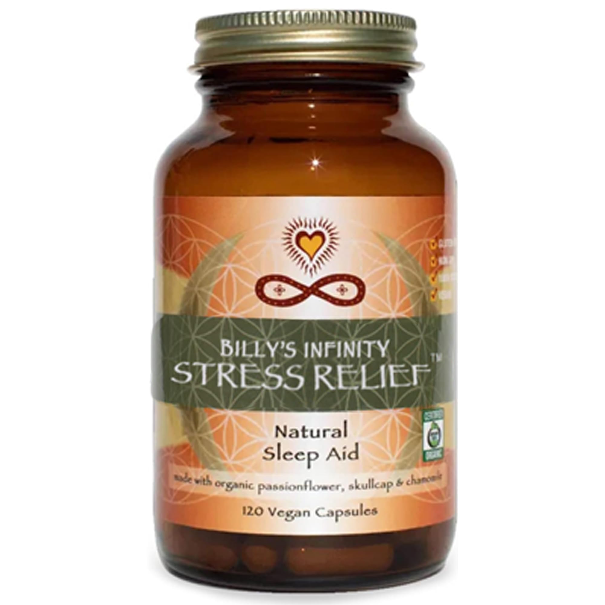 THE INFINITY DIFFERENCE : Here at Infinity, we're committed to providing the world's most nutritious superfoods with an emphasis on quality, purity, and sustainability. Every ingredient in our natural sleep supplement is strictly lab tested in multiple stages - once at our own lab and two additional times by 3rd parties. CERTIFIED ORGANIC : Our adaptogens supplements are made with pure, plant based ingredients without any hormones, chemicals, or synthetic substances. All the plants we use are raw, vegan, gluten free, non GMO, and are either OTCO certified organic or wild harvested from their native environment. ANCIENT SUPERFOOD NUTRITION : The herbs in our passion flower supplement have a long and highly-revered history in the world of Western Herbal Medicine. Each of these adaptogenic superfoods has been used for hundreds of years to promote boosted energy levels and a healthier mood. 3 POWERFUL ADAPTOGENS : Calm, soothe, and restore with three of the world's most therapeutic superfoods. Each serving of our adaptogen supplement supports mental and physical wellness with a pure blend of Skullcap, Passion Flower, and Chamomile Flowers. INFINITY STRESS RELIEF : Infinity Stress Relief is an all natural herbal supplement that calms the body and mind with a precision blend of 3 powerful adaptogenic plants. 120 Capsules (40 Day Supply).