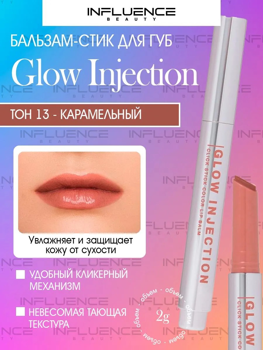 Помада бальзам Glow Injection с тающей на губах инновационной кремовой текстурой SMART GUARD для питания, увлажнения и сияющего глянцевого покрытия.Инновационный продукт гибрид, который делает их невероятно глянцевыми, притягательными, гладкими и визуально более объемными. Универсальные оттенки с сияющим финишем подходят для любого образа и настроения, а невесомая текстура позволяет добиться желаемого эффекта от легкого полупрозрачного покрытия до более интенсивного и ослепительного. Инновационный футляр с click stick механизмом позволяет точно дозировать продукт и обеспечивает равномерное распределение бальзама по коже, а инновационная кремовая текстура SMART GUARD смягчает и увлажняет губы.Использовать для смягчения кожи губ и придания легкого оттенка.
