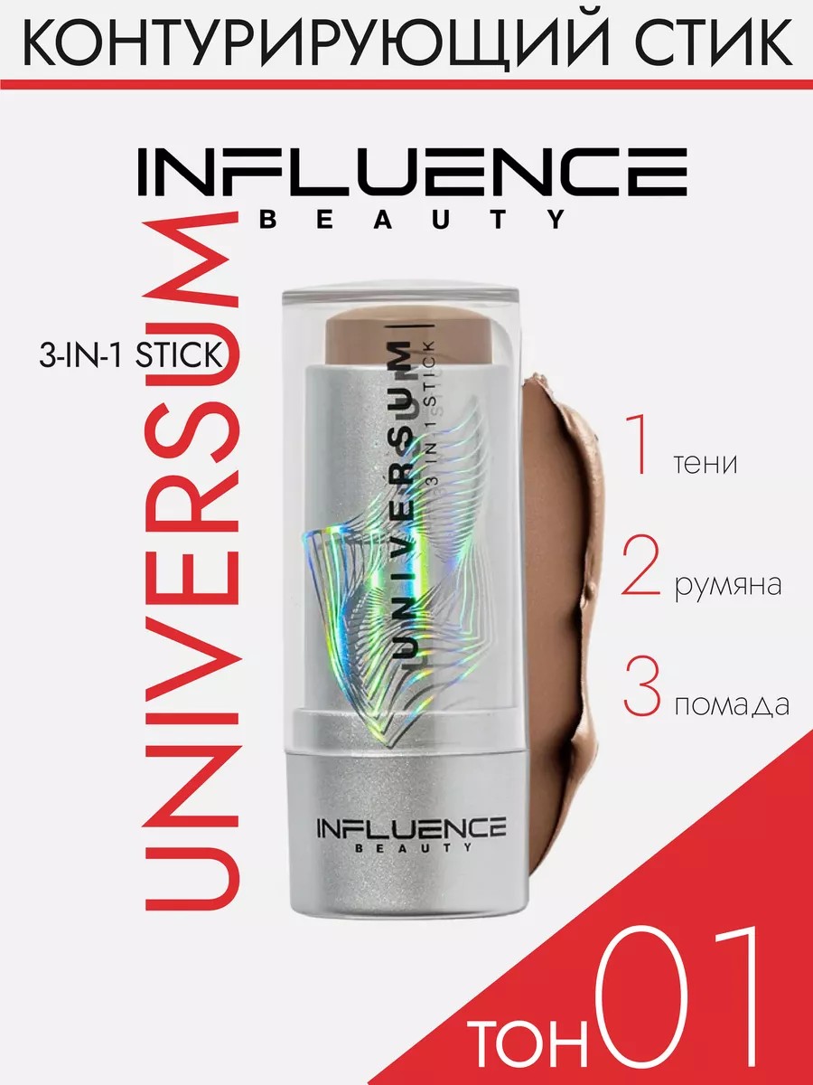 UNIVERSUM Blush from INFLUENCE BEAUTY is a cosmetic product with a weightless, airy texture for creating a natural makeup look for every day. The unique, hypoallergenic MULTIPURPOSE texture of this creamy blush blends seamlessly with the skin, without highlighting imperfections or texture, and can be used to makeup any area of the face without worrying about damaging the mucous membranes of the mouth or eyes. This creamy blush refreshes your look and allows you to achieve the visual effect of a healthy, natural glow. Liquid blush from INFLUENCE BEAUTY applies and blends easily. This multifunctional 3-in-1 makeup product: 1. can be used as an eyeshadow blush; 2. as a lip blush; 3. as a cheek blush. The compact UNIVERSUM 3-in-1 blush stick will help you unclutter your makeup bag, replacing several products at once—everything you need for your face in one package. Available in four shades: pink blush and peach blush. This product is not tested on animals and does not contain animal-derived ingredients. HOW TO USE: Apply a small amount of long-lasting blush to skin and blend. To create a monochromatic look, apply the same shade of long-lasting blush to your lips as a lipstick, to your cheeks as a blush, and to your eyes as an eyeshadow. The first shade of the UNIVERSUM 3-in-1 stick from INFLUENCE BEAUTY is perfect for sculpting and contouring. The blush can also be used as a base for dry foundations.
