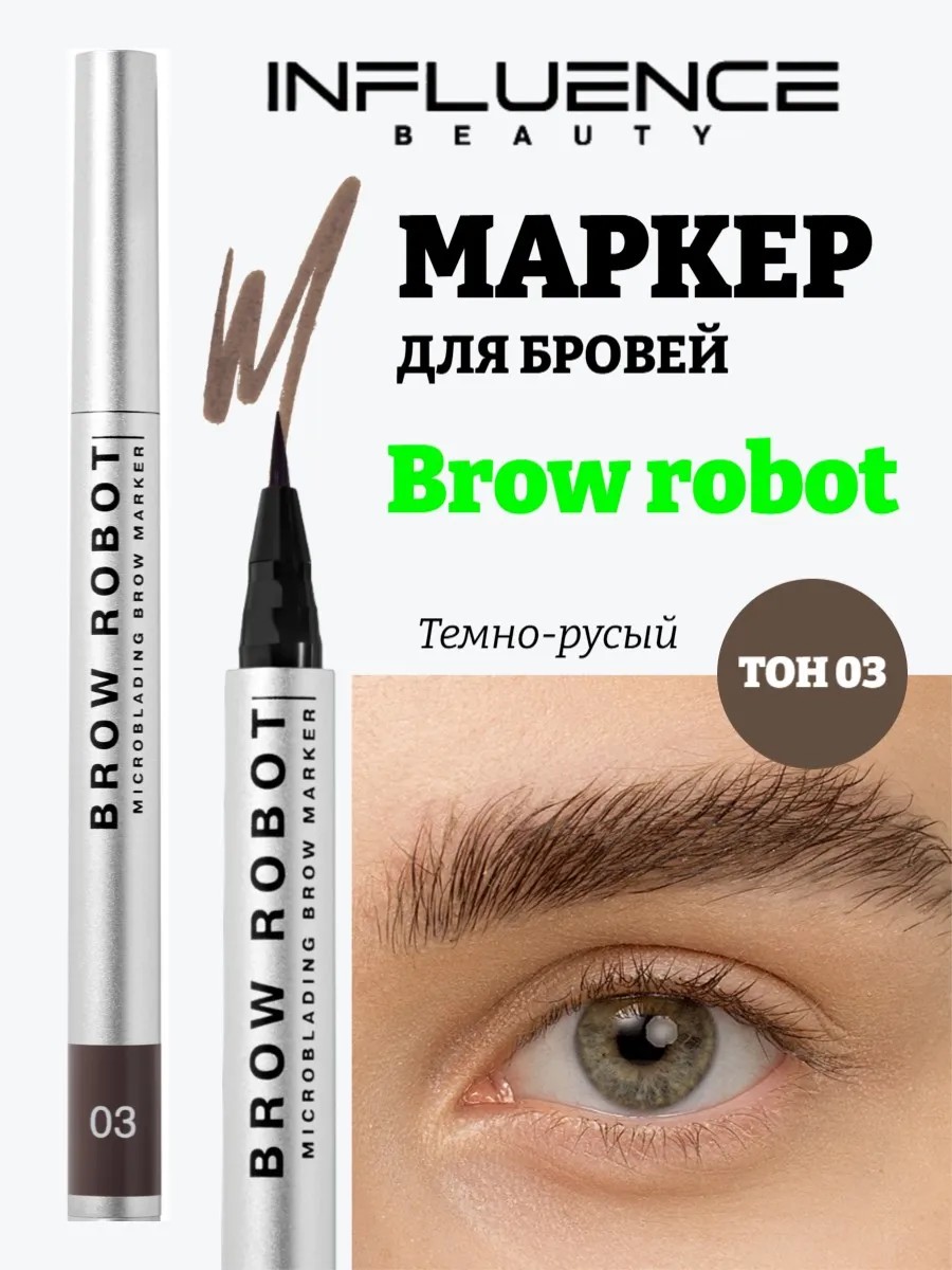 Forget about eyebrow tattooing! The fine brush of the BROW ROBOT marker from INFLUENCE BEAUTY is the secret to creating perfectly even brows. The unique MICROBLADING formula securely adheres to the skin, preventing smudging throughout the day.