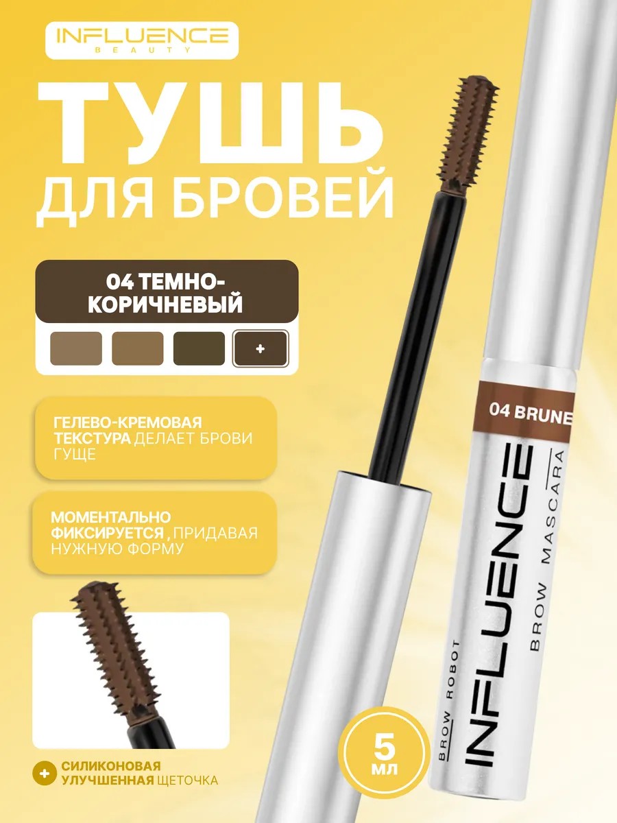 Тушь для бровей Brow Robot от Influence Beauty 5 мл, тон 04 темно-коричневый