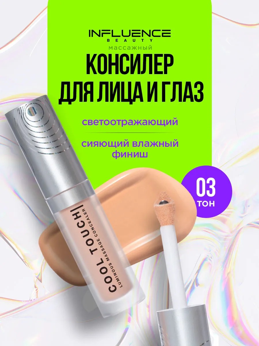 Консилер под глаза легкий COOL TOUCH от INFLUENCE BEAUTY — это инновационный светоотражающий массажный консилер, созданный с использованием передовых технологий в сфере косметологии.