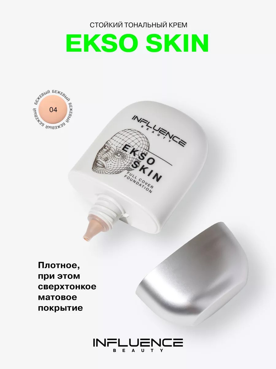 Инновационная концепция тонального крема для лица EKSO SKIN от INFLUENCE BEAUTY предназначена для плотного и одновременно тонкого покрытия .