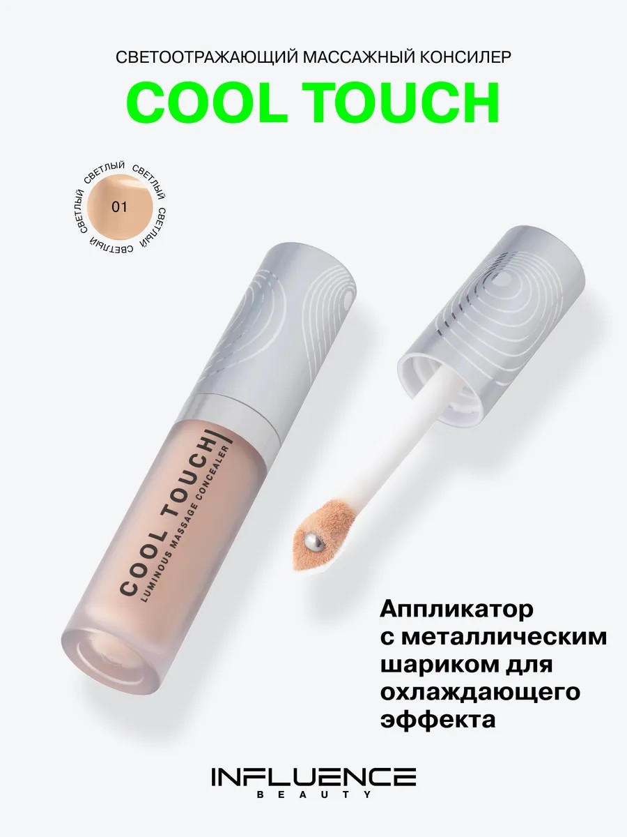 COOL TOUCH от INFLUENCE BEAUTY — это инновационный светоотражающий массажный консилер, созданный с использованием передовых технологий в сфере косметологии.