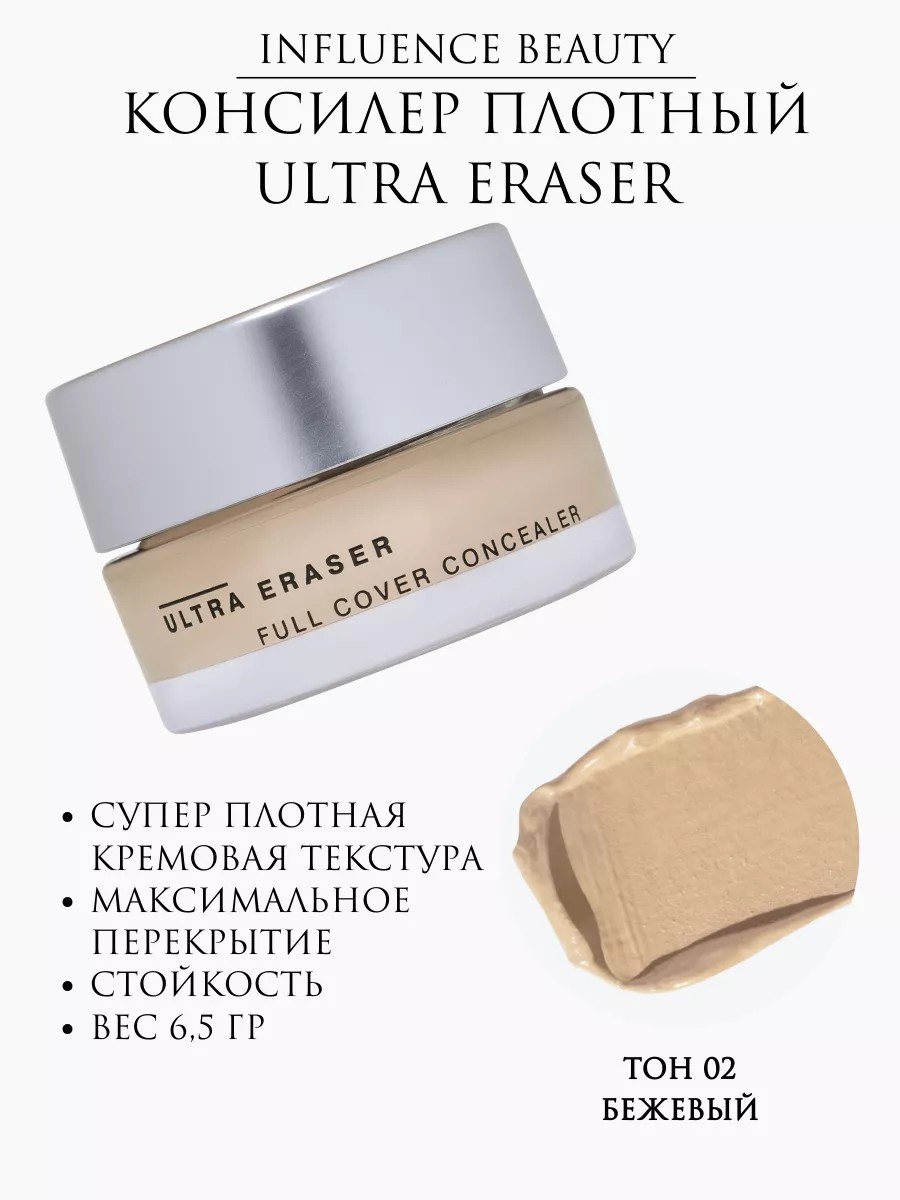 ULTRA ERASER — суперплотный кремовый консилер от INFLUENCE BEAUTY для создания ровного тона кожи с безупречным стойким покрытием. Консилер подходит для любителей и профессионалов в мейкапе, легко наносится и растушевывается, обеспечивая максимально естественный финиш и стойкое покрытие на весь день. Благодаря упаковке в виде круглой баночки с крышкой продукт удобно набирать кистью, спонжем и подушечками пальцев. Макияж с ULTRA ERASER от INFLUENCE BEAUTY способен трансформировать вашу внешность, будто вы пересекли границы времени и пространства, достигнув невероятного совершенства.
