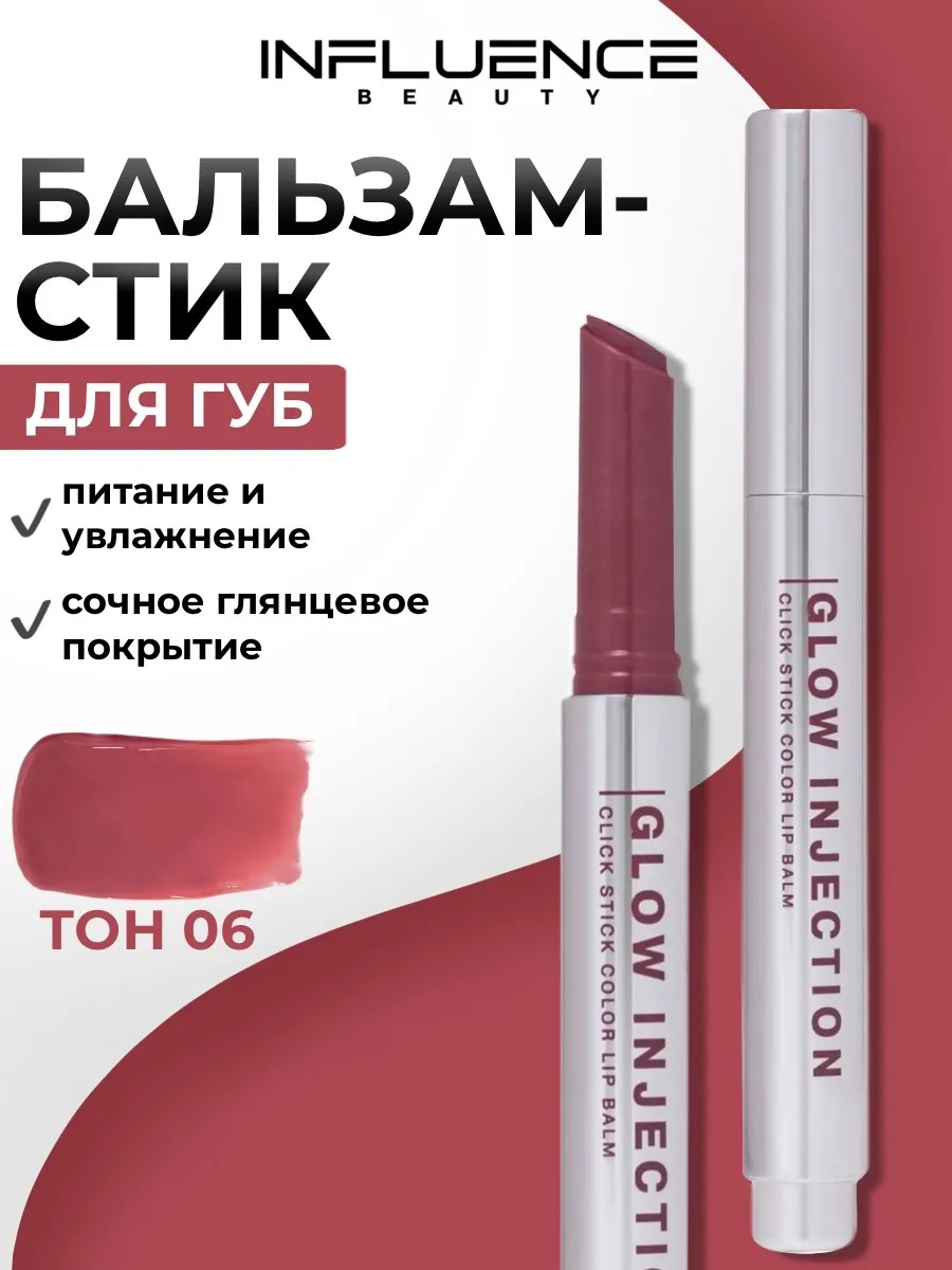 Помада для губ в стике Influence Beauty Glow Injection, тон 06 розово-коричневый нюд