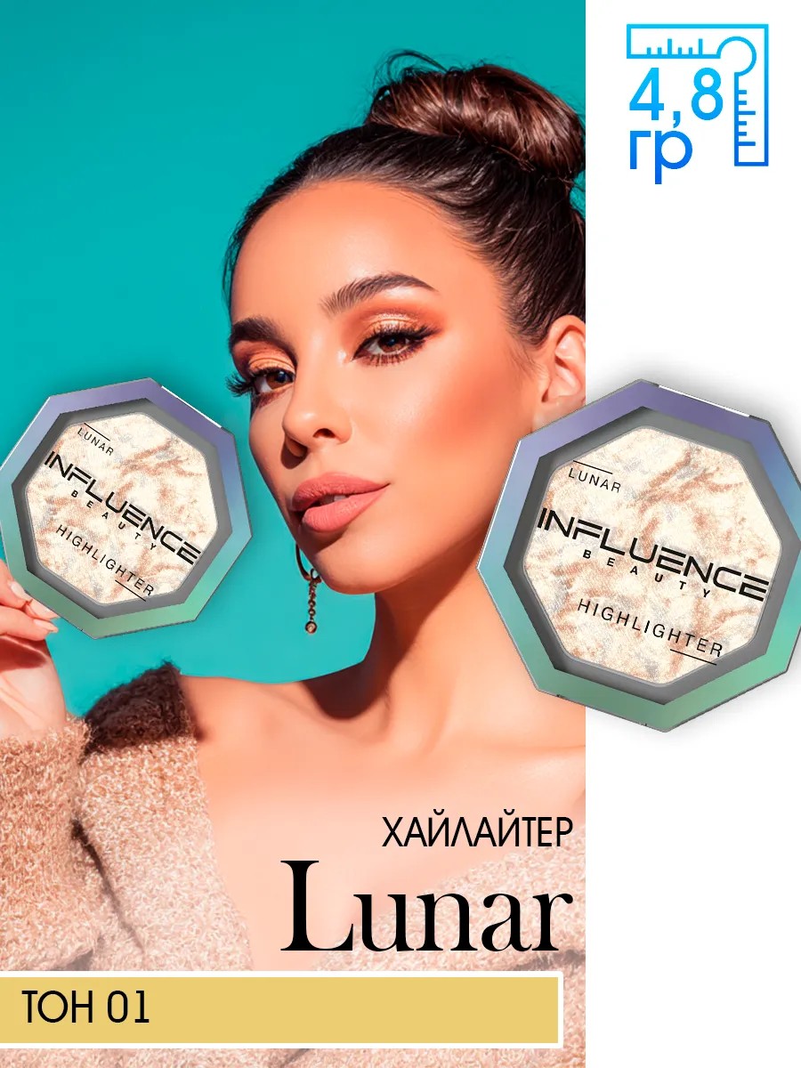 Influence Хайлайтер Lunar 01.Мельчайшие сияющие частицы разных оттенков создают на коже равномерное деликатное сияние, завораживающие переливы которого притягивают и манят.Благодаря технологии NOVAMIX сияющие частицы и пигменты перемешиваются отдельными слоями, что позволяет создать неповторимое сияние на вашей коже. Цвет и рельеф этого хайлайтера визуально повторяют поверхность небесных тел.Нанесите и растушуйте хайлайтер пушистой кистью на выступающих участках лица, так как именно на них в первую очередь падает свет.