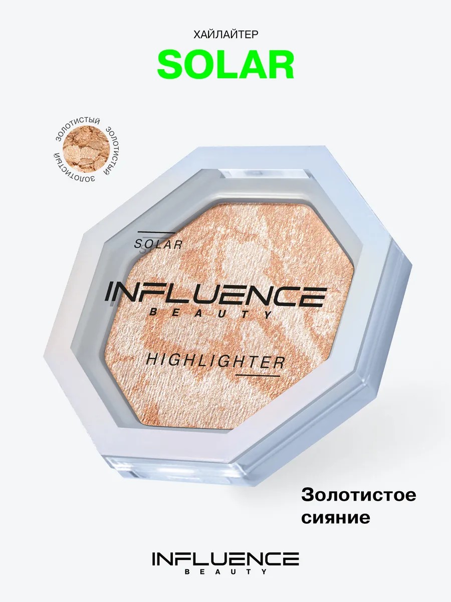 Хайлайтер для лица SOLAR от INFLUENCE BEAUTY – это незаменимая косметика для создания красивого образа. С нежным мерцающим глиттером, данный сухой хайлайтер с золотым сиянием создает эффект атласной кожи и красиво искрится в лучах света. Крошечные блестки и шиммер обеспечивают роскошное сияние, добавляя блеск и красоту вашему макияжу. Благодаря технологии NOVAMIX сияющие частицы и пигменты сухого хайлайтера перемешиваются отдельными слоями, что позволяет высветлить те участки, на которых вы хотите акцентировать внимание. В ассортименте представлены 2 тона хайлайтера, которые идеально подойдут как для лица, так и для тела. В наборе с жидкими румянами, кремовыми тенями в палетке и бронзером-скульптором в стике вы получите сногсшибательный makeup – отличный выбор для профессиональных визажистов. Продукция не тестируется на животных и не содержит компонентов животного происхождения, что делает ее идеальным выбором для женщин, заботящихся о своей красоте и этичности. Самый трендовый финиш в макияже лица с этим хайлайтером! СПОСОБ ПРИМЕНЕНИЯ: чтобы выделить и подчеркнуть определенные зоны лица, наносите хайлайтер кистью или пальцами на его выступающие участки, так как именно на них в первую очередь падает свет. Для более интенсивного сияющего эффекта в макияже лица наносите хайлайтер на влажную кожу. Дайте своему лицу и глазам блестящий и сияющий вид с помощью этого идеального декоративного средства!