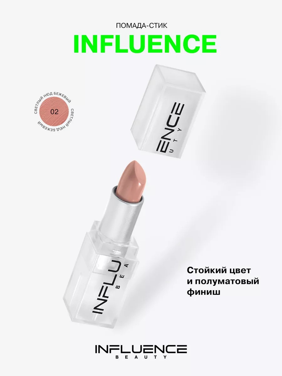 Помада матовая для губ INFLUENCE — это современный взгляд на классику и женскую красоту. С уникальным сочетанием лучших качеств, она обладает инновационной формулой CONJUNCTION MIX, обеспечивающей полуматовый финиш, стойкость и насыщенность цвета. Перламутровые оттенки идеально подходят для ежедневного макияжа, а высокопигментированная текстура дарит губам интенсивное покрытие, не удерживаясь в складочках и создавая эффект объемных губ. Помада не теряет яркости на протяжении нескольких часов, одновременно питая и увлажняя губы как тающий бальзам для гую. Полупрозрачный корпус демонстрирует функциональность и лаконичность механизма. В наборе INFLUENCE представлено 20 оттенков: от нюдовых до насыщенно-красных, что позволяет подобрать идеальный цвет для любого образа. Декоративная косметика influence beauty не тестируется на животных и не содержит животных компонентов.
