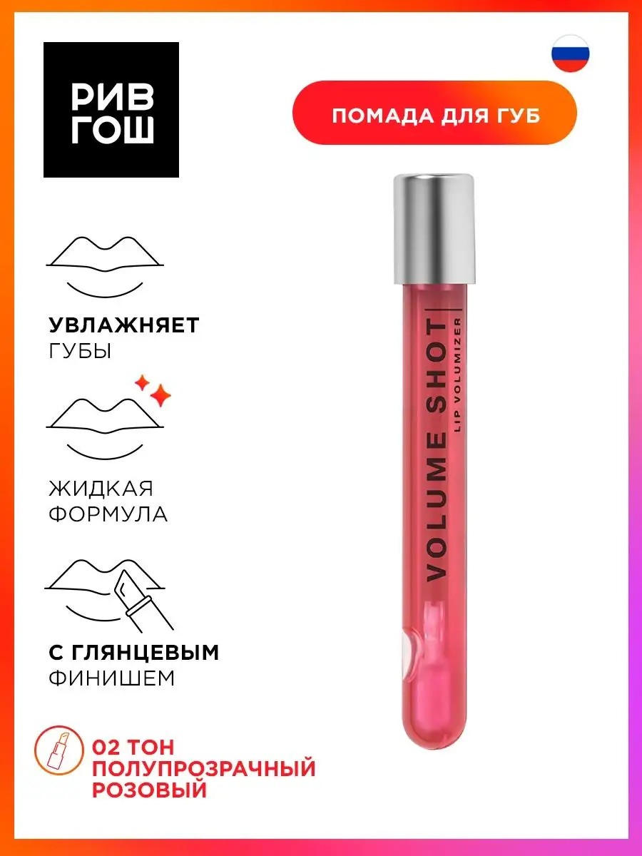 Сочетание гиалуроновой кислоты, которая ухаживает за губами и делает их объемными, и тонизирующего компонента, который улучшает циркуляцию крови, направлено на увеличение объема губ. Содержит витамин Е, масло алое. Технология Plumpinizer делает губы еще объемнее благодаря двойной направленности действия компонентов.Полупрозрачный розовый Блеск для увеличения объема губ Volume shot ухаживающий, 02 - 1 шт. У нас Вы всегда сможете подобрать женскую и мужскую парфюмерию, декоративную косметику, а так же уходовые средства для волос, тела и лица. РИВ ГОШ вдохновляет дарить подарки каждый день. Создайте идеальный образ с нашим блеском для губ, который станет незаменимым элементом вашего макияжа. Этот увлажняющий блеск не только подчеркнет природную красоту, но и обеспечит необходимое увлажнение вашей кожи. Если вы хотите добавить яркий акцент к своему образу, масло блеск для губ станет отличным выбором. Легкая текстура позволит вам легко нанести продукт, придавая губам эффектный и шикарный вид. Бальзам для губ создает красивое глянцевое покрытие, предотвращает пересушивание и шелушение.