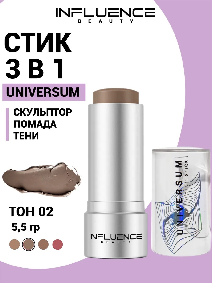 Идеальный контуринг с Influence Beauty Стик 3 в 1 Universum, тон 02 нейтральный коричневый