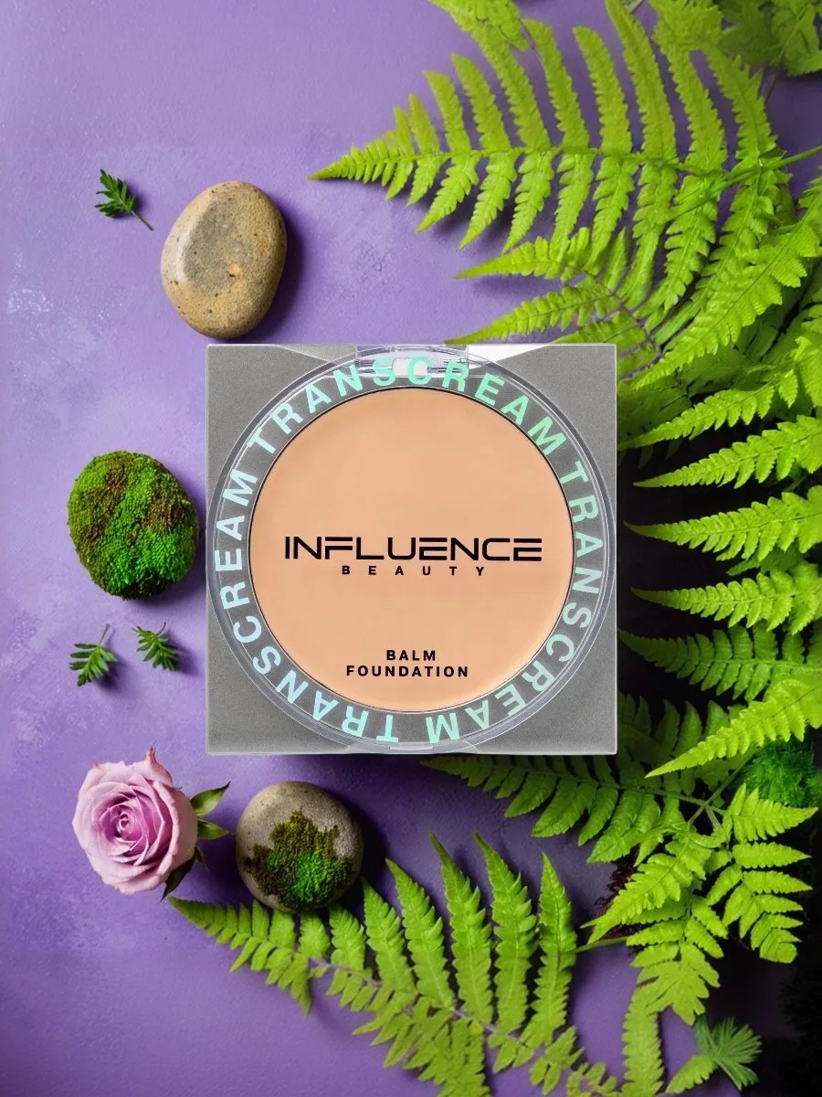 Influence Transcream Foundation Balm. TRANSCREAM by INFLUENCE BEAUTY is more than just a next-generation foundation balm; it's a true skin transformer that will change the way you think about textures and coverage. Initially, the product appears solid and dense, but with one light touch, TRANSCREAM transforms into a flexible, weightless cream. It glides on seamlessly, creating a matte, natural-looking, light-to-medium coverage. Its action is based on Trans-Fusion technology. Specially developed viscosity-controlling agents initially exist in a dense, solid state. Upon contact with the warmth of your skin, sponge, or brush, they instantly activate, transforming into a softer, more flexible state. The innovative texture contains three viscosity-controlling agents whose melting point ideally matches the human body temperature (36.6°C). This melt-in-balm effect allows the product to blend into the skin, releasing micropigments that are evenly distributed, blurring imperfections and providing a smooth, matte finish. Apply the foundation to prepped skin with your fingers, a sponge, or a brush, building coverage as needed.