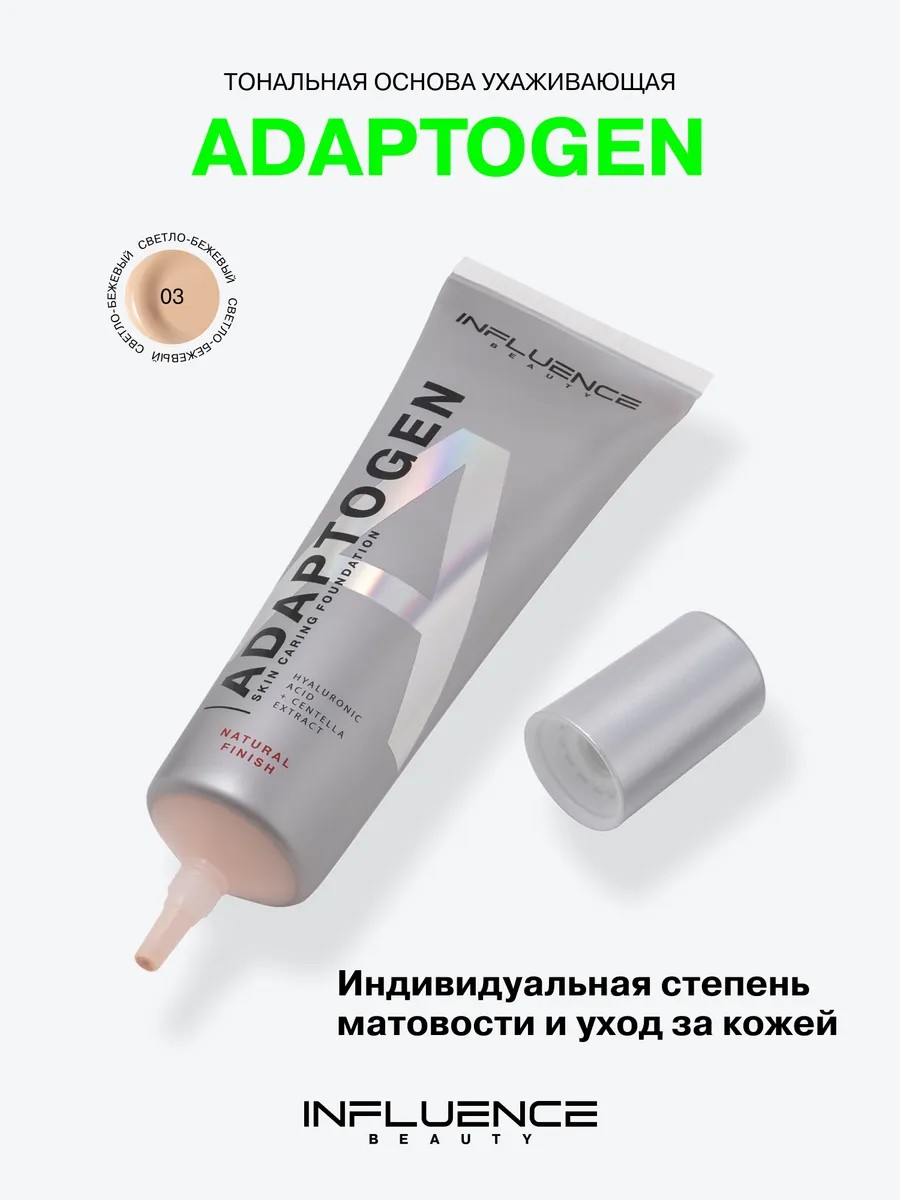 ADAPTOGEN от INFLUENCE BEAUTY — это уникальное сочетание декоративных свойств тональной основы с ухаживающими компонентами в составе для безупречного макияжа, идеального тона и заботы о вашей коже. Продукт с легкой жидкой текстурой равномерно распределяется и обеспечивает естественное покрытие с натуральным матовым финишем без эффекта маски.