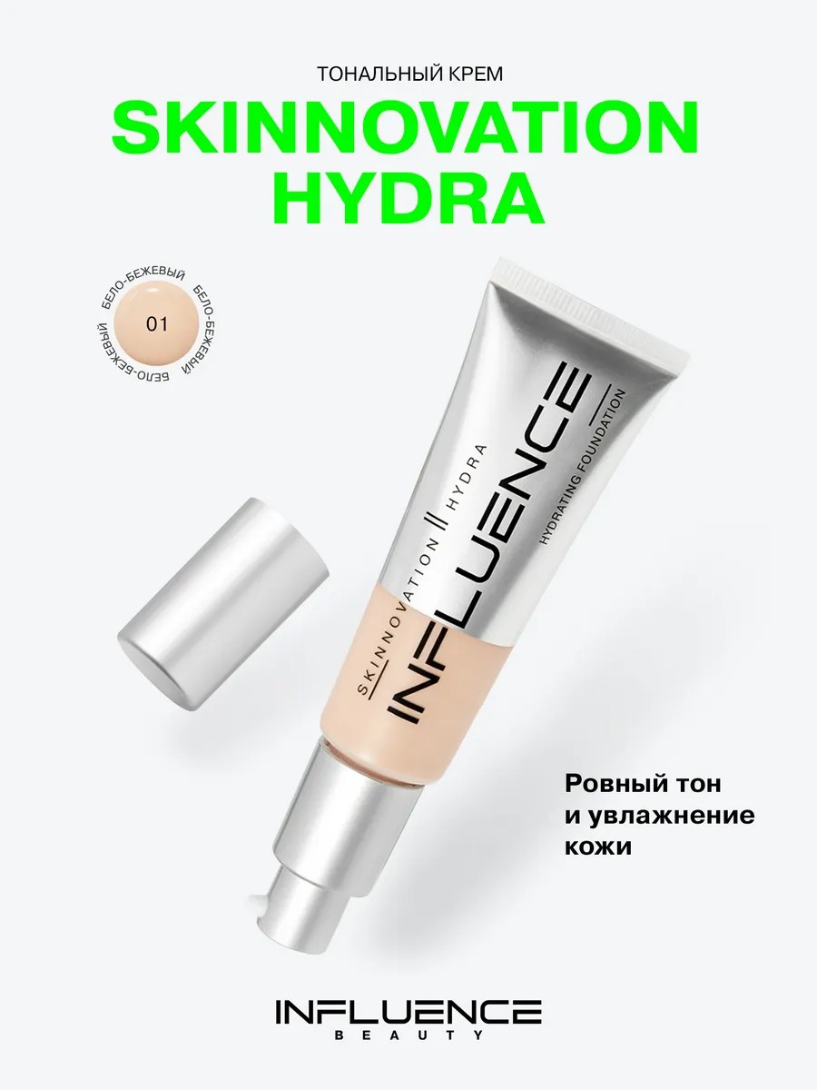 Тональный крем SKINNOVATION II HYDRA от INFLUENCE BEAUTY – это косметика, разработанная для создания совершенного макияжа и ухода за кожей лица. С помощью своей уникальной технологии HYDRAPIGMENT данный крем глубоко увлажняет, придавая упругость и эластичность, что особенно важно для поддержания здоровья кожи. Этот тональный крем обеспечивает выравнивание тона и обладает легким покрытием, которое не только не сушит кожу, но и придает ей естественное сияние. Он эффективно скрывает поры, создавая безупречный внешний вид.Тональная основа,позволяет легко регулировать уровень покрытия – от легкого невесомого до более плотного, в зависимости от ваших предпочтений. Крем увлажняет кожу, делая ее здоровой и ухоженной, что подчеркивает вашу красоту и естественное сияние. Используйте этот стойкий тональный крем как базу для макияжа и наслаждайтесь идеальным результатом на протяжении всего дня.Тональный крем для лица SKINNOVATION II HYDRA от INFLUENCE BEAUTY - это идеальный вариант, который прекрасно сочетается с маслами, сыворотками, праймерами и всеми видами женской декоративной косметики, как с кремовой, так и сухой текстурой. Подходит для всех типов кожи В нашем ассортименте представлено 5 тонов - от светлого до темно-бежевого - что позволяет выбрать оптимальную подходящую Вам.Данная продукция не тестируется на животных.Технология воздушной подушки в упаковке тональных кремов сохраняет средство в течение всего срока годности. Способ применения:для получения оптимального результата Вам необходимо наносить базу под макияж на хорошо увлажненную кожу. Перед первым использованием необходимо нажать на дозатор 40-50 раз, чтобы выпустить воздух из флакона. Далее, нанесите тональный крем на кожу лица с помощью спонжа, кисти или пальцев, равномерно распределяя средство и достигая легкого и нежного покрытия. Получившийся макияж выглядит естественно и подчеркивает Вашу красоту и сияние кожи.