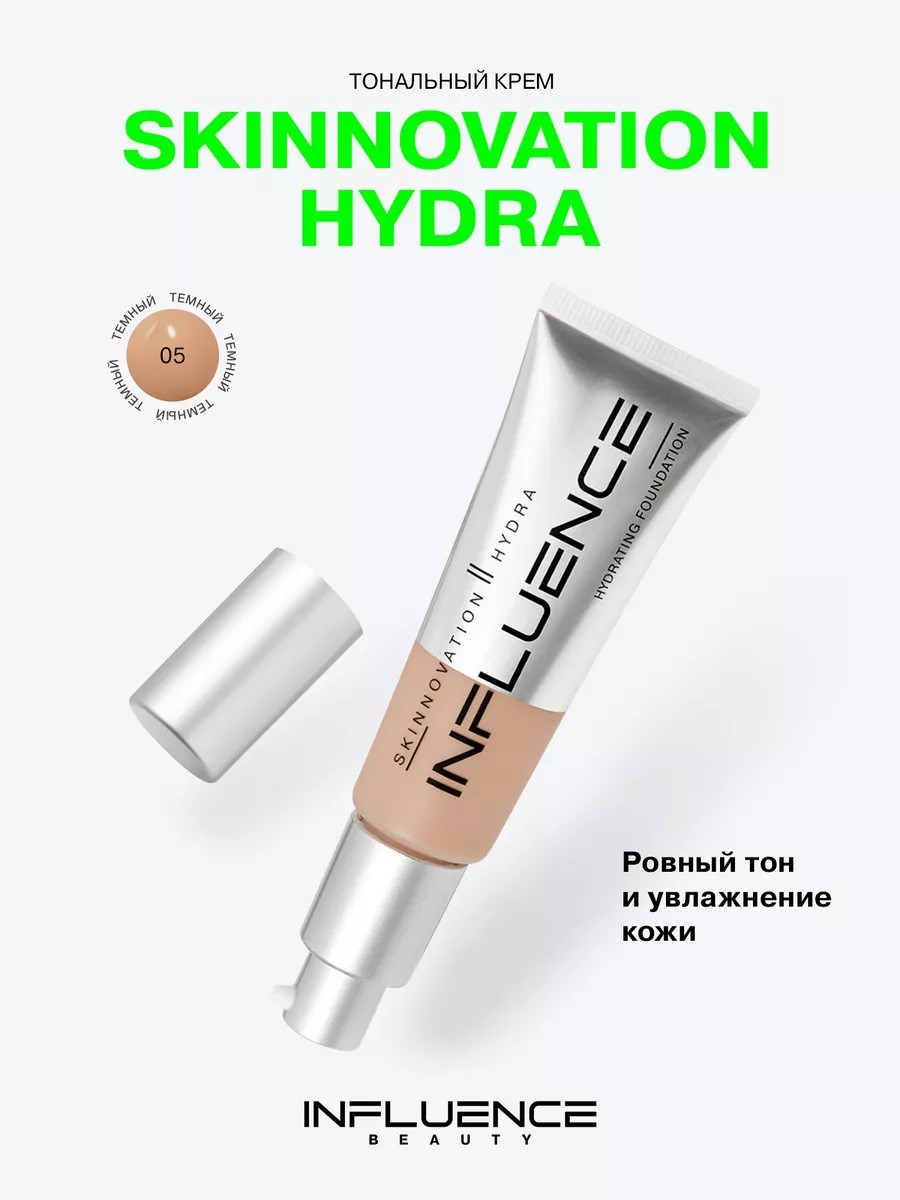 Тональный крем SKINNOVATION II HYDRA от INFLUENCE BEAUTY – это женская косметика, разработанная для создания совершенного макияжа и ухода за кожей лица. С помощью своей уникальной технологии HYDRAPIGMENT данный крем глубоко увлажняет, придавая упругость и эластичность, что особенно важно для поддержания здоровья кожи. Этот тональный крем обеспечивает выравнивание тона и обладает легким покрытием, которое не только не сушит кожу, но и придает ей естественное сияние. Он эффективно скрывает поры, создавая безупречный внешний вид.Тональная основа,позволяет легко регулировать уровень покрытия – от легкого невесомого до более плотного, в зависимости от ваших предпочтений. Крем увлажняет кожу, делая ее здоровой и ухоженной, что подчеркивает вашу красоту и естественное сияние. Используйте этот стойкий тональный крем как базу для макияжа и наслаждайтесь идеальным результатом на протяжении всего дня.Тональный крем для лица SKINNOVATION II HYDRA от INFLUENCE BEAUTY - это идеальный вариант, который прекрасно сочетается с маслами, сыворотками, праймерами и всеми видами декоративной косметики, как с кремовой, так и сухой текстурой. Подходит для всех типов кожи В нашем ассортименте представлено 5 тонов - от светлого до темно-бежевого - что позволяет выбрать оптимальную подходящую Вам.Данная продукция не тестируется на животных.Технология воздушной подушки в упаковке тональных кремов сохраняет средство в течение всего срока годности. Способ применения:для получения оптимального результата Вам необходимо наносить базу под макияж на хорошо увлажненную кожу. Перед первым использованием необходимо нажать на дозатор 40-50 раз, чтобы выпустить воздух из флакона. Далее, нанесите тональный крем на кожу лица с помощью спонжа, кисти или пальцев, равномерно распределяя средство и достигая легкого и нежного покрытия. Получившийся макияж выглядит естественно и подчеркивает Вашу красоту и сияние кожи.