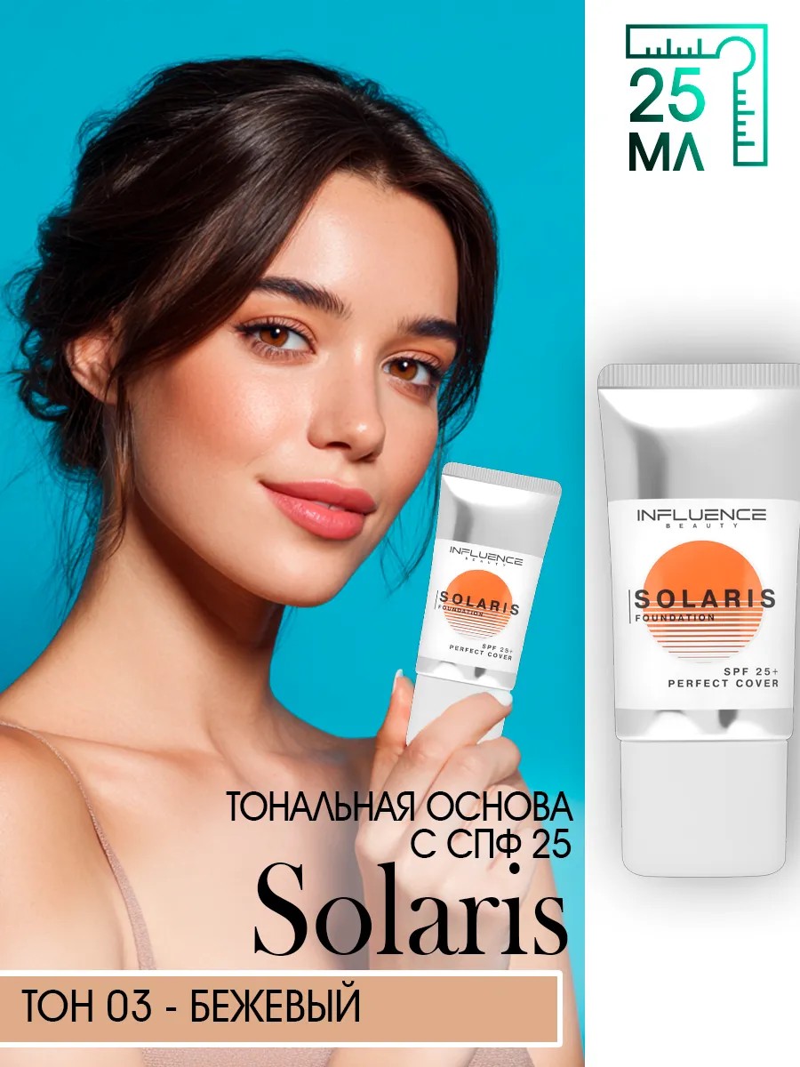 Тональный крем SOLARIS — это инновационный продукт 2 в 1 от INFLUENCE BEAUTY для безупречного стойкого тона кожи с максимальной защитой от ультрафиолетовых лучей. Уникальные фильтры с SPF 25+ эффективно защищают от UVA- и UVB-лучей, предотвращая фотостарение и появление пигментных пятен.Крем в трех натуральных оттенках подходит для всех типов кожи, в том числе чувствительной и склонной к аллергическим реакциям. А также оказывает питательное и увлажняющее действие благодаря бисабололу, витаминам С и Е в составе. Крем создает плотное покрытие perfect cover с естественным сияющим финишем, которое безупречно выравнивает тон и скрывает несовершенства. SOLARIS от INFLUENCE BEAUTY с невесомой текстурой легко распределяется по коже и обеспечивает стойкий комфортный макияж без ощущения маски и жирного блеска в течение всего дня.Способ нанесения: Нанесите тональную основу на кожу лица и распределите спонжем, кистью или подушечками пальцев. Cодержит солнцезащитные фильтры.