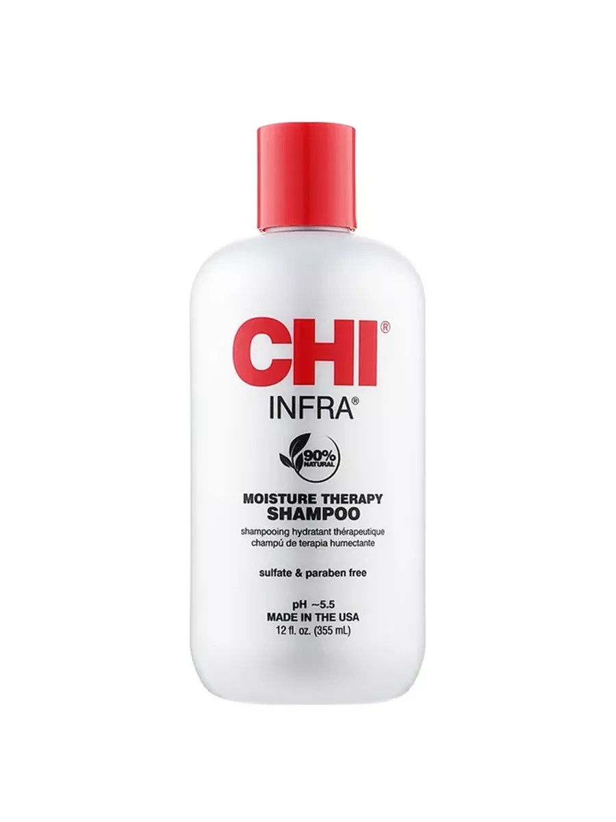 Action. Chi Infra Shampoo for all hair types is part of the CHI Infra complex and was developed specifically for this line. CHI Infra Shampoo contains CHI ingredients and is suitable for daily use. Infra Shampoo provides excellent gentle cleansing. Regular use of this shampoo helps restore moisture balance in hair and give it strength. Chi Infra Shampoo is very gentle on hair, carefully washing away impurities, promoting maximum cleansing and hydration. Ingredients. Rose water, hydrolyzed silk, hydrolyzed wheat protein, extract of nettle, wormwood, rosemary, comfrey, thyme. Lemon, citric acid. Directions for use. Apply a small amount to damp hair, lather, and rinse thoroughly. 950 ml