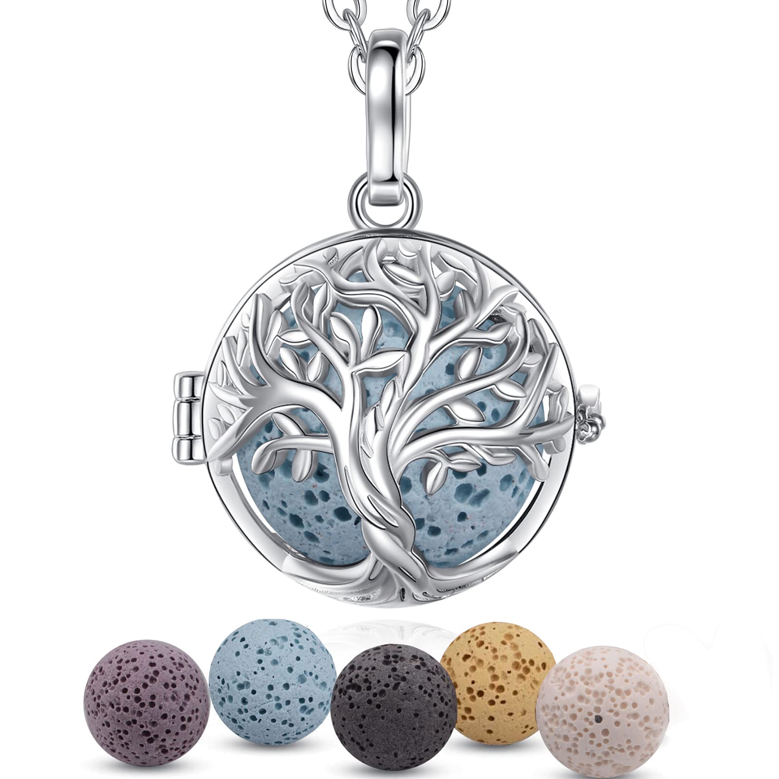 GiftsVery suitable for Mother's Day, sister day, Thanksgiving, anniversary, wedding, Christmas, Halloween, birthday, graduation ceremony and party.The perfect gift for a special person.It is also a very delicious piece in your collection.The best choice to give away!.Easy operationThe trailer opens to the side like a small box that was specially developed for fixing our lava.Simply add a few drops of your preferred essential oil to the lava and you can enjoy your personal aromatherapy machine.MaterialLava and silver copper.Environmentally friendly materials.Chain size: 24 inches Lava punch: 20 mm.5 colors of lavacontains 5 different lava colors that give you different moods.This lava is a good way to distribute essential oils and it can last for several hours.It can also make the necklace look more beautiful.Exclusive designTree of life is a symbol of immortality and healing.Take the energy of the tree of the life necklace, let it grow with a positive attitude to life, wear a tree chain to return to nature, feel the connection with nature, and bring good health and wealth inwards.The fruits on the tree represent the growth of your life, no matter what life brings.You are wealth in your life!.