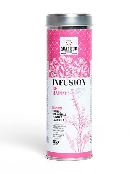 "BE HAPPY!" ROOIBOS - LEMONGRASS - VERBENA - CALENDULA FLAVOURED INFUSION ROUND BOX 85 g.INFUSION "BE HAPPY!" AROMATISÉE ROOIBOS - CITRONNELLE - VERVEINE - CALENDULA BOITE RONDE 85 g.INFUSION "BE HAPPY!" AROMATISÉE ROOIBOS - CITRONNELLE - VERVEINE - CALENDULA BOITE RONDE 85 g