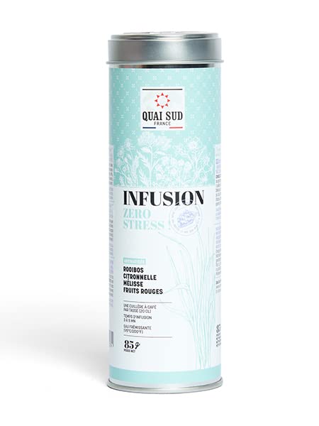 ZERO STRESS INFUSION ROOIBOS - LEMONGRASS - LEMON BALM - RED FRUITS Round Box 85 g.INFUSION ZÉRO STRESS AROMATISÉE ROOIBOS - CITRONNELLE - MÉLISSE - FRUITS ROUGE Boîte Ronde 85 g.INFUSION ZÉRO STRESS AROMATISÉE ROOIBOS - CITRONNELLE - MÉLISSE - FRUITS ROUGE Boîte Ronde 85 g
