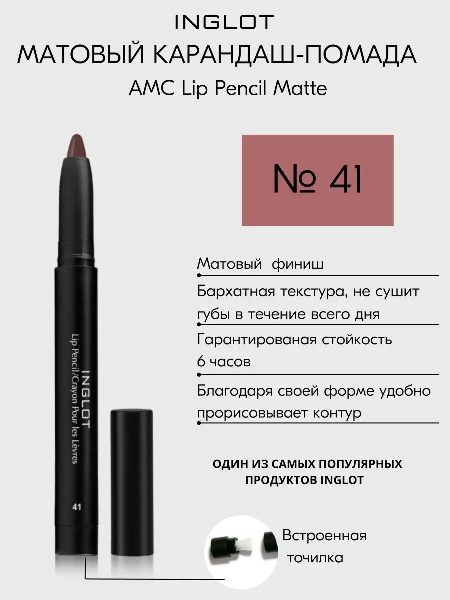 INGLOT Помада для губ матовая AMC Lip Pencil Matte 41