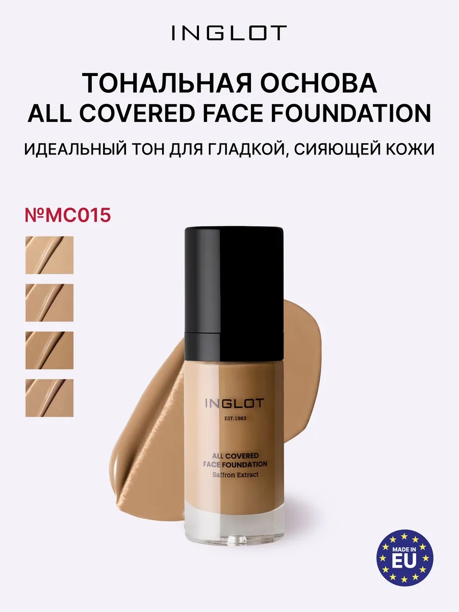 Ухаживающая формула Inglot All Covered Foundation делает его больше, чем просто косметика для макияжа. Обогащенный экстрактами шафрана (""красное золото"") и белой лилии, витамином Е, растительным глицерином и другими активными компонентами (включая экзополисахарид морских водорослей, биоактивные пептиды и экстракт ягод годжи), он интенсивно увлажняет, улучшает состояние кожи, повышает ее эластичность и обеспечивает длительное ощущение комфорта. Благодаря самому безопасному и гипоаллергенному составу, этот тон для лица подходит для всех типов кожи, включая проблемную и чувствительную, даря не только красоту, но и заботу.