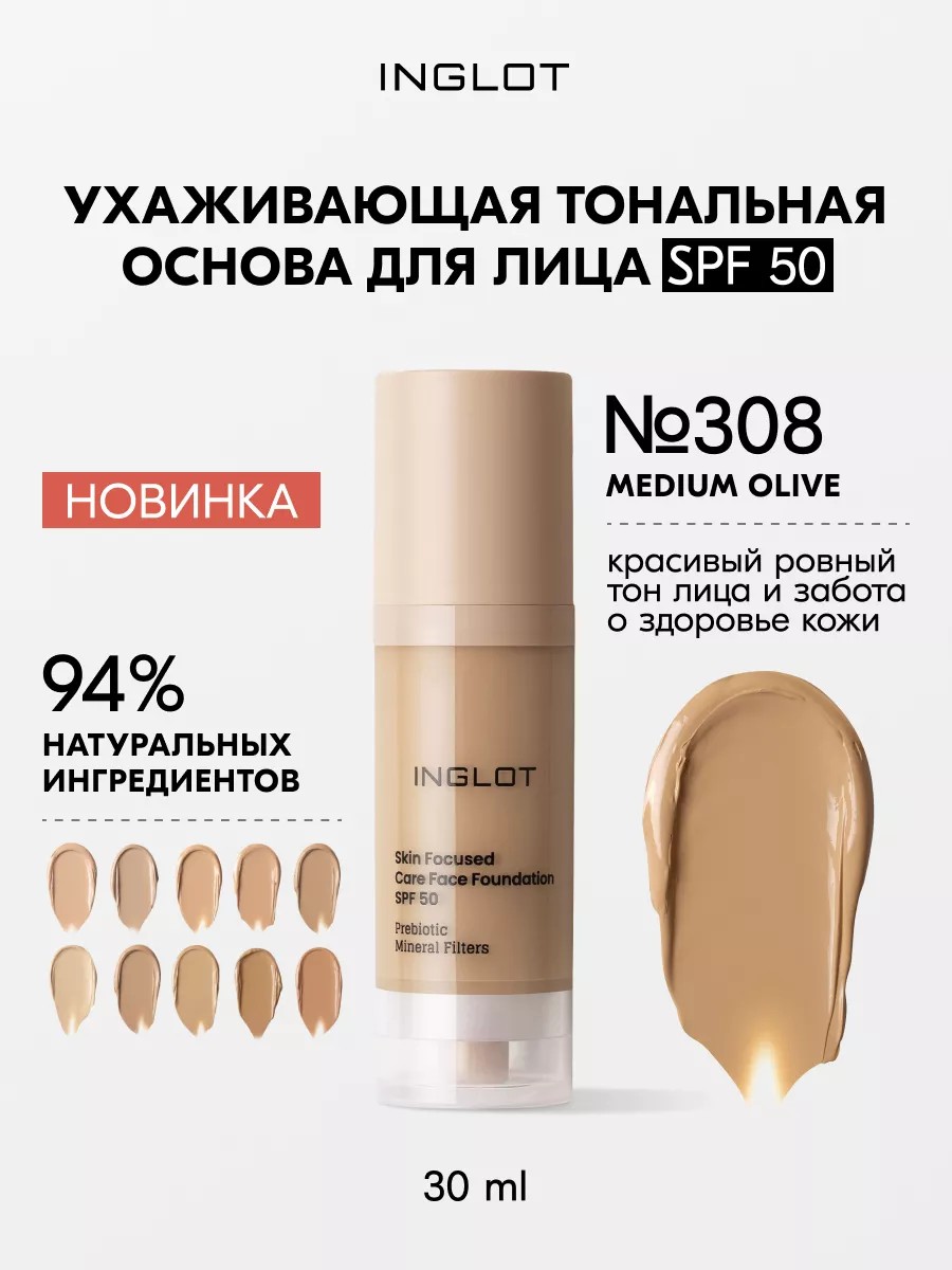 INGLOT Тональный крем с защитой SPF 50 № 308