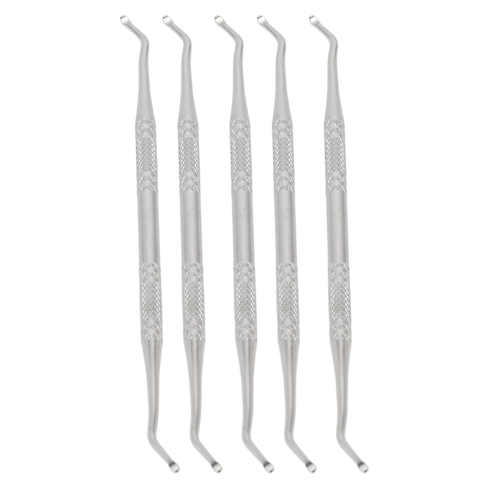 1. QUICK TRIMMING: Ingrown toenail trimming tool adopts dual head design, complete nail trimming and removing in one go, efficient and time saving. 2. PRECISE TRIMMING: The incisive cutter easily trims nail shape, and also efficiently cuts off nail edges and cuticles and prevents accidental cuts or injuries. 3. STURDY AND DURABLE: Nail pedicure tool is constructed with stainless steel, durable, not easy to rust, long term use, providing great convenient for you. 4. SAFETY PROTECTION: Cutting head design is rounded to avoid accidental injury to the skin, to ensure the safety of use. You do not have to worry about safety when using it. 5. PORTABLE STORAGE: Lightweight and portable, nail care anytime and anywhere, easy to carry for travelling, and suitable for all your manicure and pedicure need. Spec: Item Type: Ingrown Toenail Tool Material: Stainless Steel Quantity: 5pcs PackageList: 5 xIngrown Toenail Tools