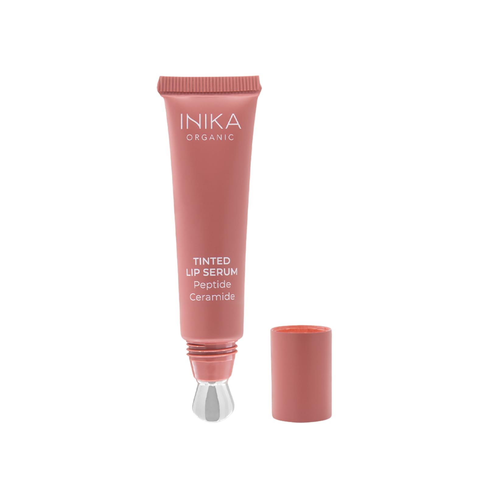 INIKA Organic Tinted Lip Serum | Ceramide + Peptide Infused Sheer Wash of Color Plumps Softens Smooths Hydrates + Repairs. Natural & Vegan (Peony)