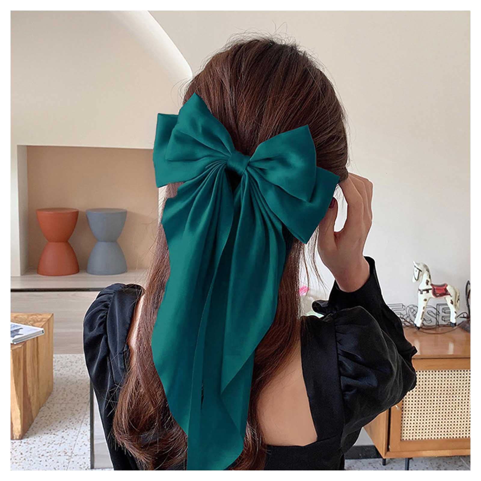 Double Bow Hair Clips Headpieces.If you have any questions, please feel free to contact us at any time. we will do our best to help you. Large Bow Ribbon Hair Clips Accessory for women.Can be used as lovely gifts. Fashionable hair barrettes accessories are not only beautiful prom accessories, but also exquisite Christmas gifts, New Year gifts, birthday gifts, and Mother's Day gifts for friends or family. Green Silky Bowknot Hairclips Hairpin.Make you charming and stylish. Long Silk Bow Hair Barrettes as images shown,dimension around 20x35cm. Vintage Bow Hair Clips are made of quality silk, meet your daily demands of outfits.