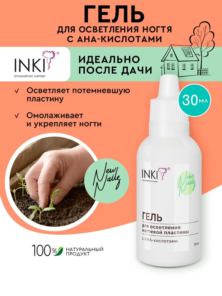 Гель для осветления ногтевой пластины с AHA-кислотами - настоящее спасение в сезон дач и огородов. Он особенно актуален, когда ногти подвергаются окрашиванию от земли, удобрений и воды с высоким содержанием железа.