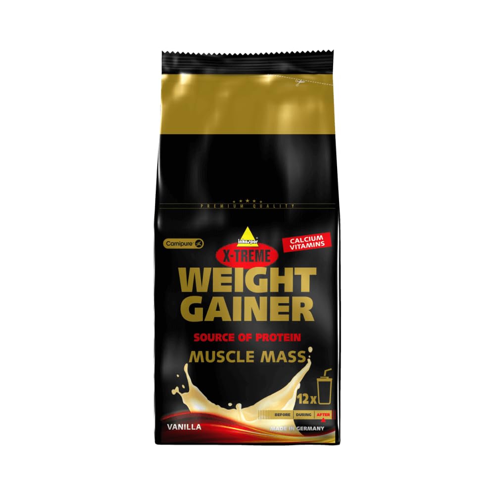 Carbohydrate protein powder with MCT oil (7 ) and L-carnitine (0.1 ) for the production of a shake. INGREDIENTS maltodextrin, fructose, SKIMMED MILK POWDER, medium chain triglycerides powder (MCT powder, glucose syrup, MILK PROTEIN, emulsifier (citric acid esters of mono- and diglycerides of fatty acids)), MILK PROTEIN (CASEIN (MILK)), WHEY PROTEIN (MILK), thickener (guar gum), calcium citrate, flavourings, L-carnitine (0.1 ), magnesium carbonate, sodium chloride, Vitamin C, Niacin, Vitamin E, Pantothenic acid, Vitamin B6, Vitamin B2, Vitamin B1, Folic acid, Vitamin B12 INSTRUCTIONS FOR USE Recommended daily use: 1 serving. Mix 100 g LEGAL DISCLAIMER Food supplements are not a substitute for a balanced and varied diet. See moreMade in Germany. Premium quality since 1982. Quality L-carnitine Carnipure. Without sweeteners. 15 proteins, 70 carbohydrates.Inkospor X-Treme Weight Gainer, vanille, 1200g zak 1200 g vanille Koolhydraat-eiwitpoeder met MCT-olie (7 ) en L-carnitine (0,1 ) voor de productie van een shake. INGREDIËNTEN maltodextrine, fructose, MAGERE MELKPOEDER, middellangeketen triglyceridenpoeder( MCT poeder, glucosestroop, MELKEIWIT, emulgator( citroenzure esters van mono- en diglyceriden van vetzuren)), MELKEIWIT( CASEïNE (MELK)), EIWIT VAN WEI (MELK), verdikkingsmiddel( guarpitmeel), calciumcitraat, aroma's, L-carnitine(0,1 ), magnesiumcarbonaat, natriumchloride, Vitamine C, Niacine, Vitamine E, Pantotheenzuur, Vitamine B6, Vitamine B2, Vitamine B1, Foliumzuur, Vitamine B12 GEBRUIKSAANWIJZING Aanbevolen dagelijks gebruik: 1 portie. Meng 100 g WETTELIJKE DISCLAIMER Voedingssupplementen zijn geen vervanging voor een evenwichtige en gevarieerde voeding. Meer bekijkenGemaakt in Duitsland. Premium kwaliteit sinds 1982. Kwaliteits-L-carnitine Carnipure. Zonder zoetstoffen. 15 eiwitten, 70 koolhydraten.