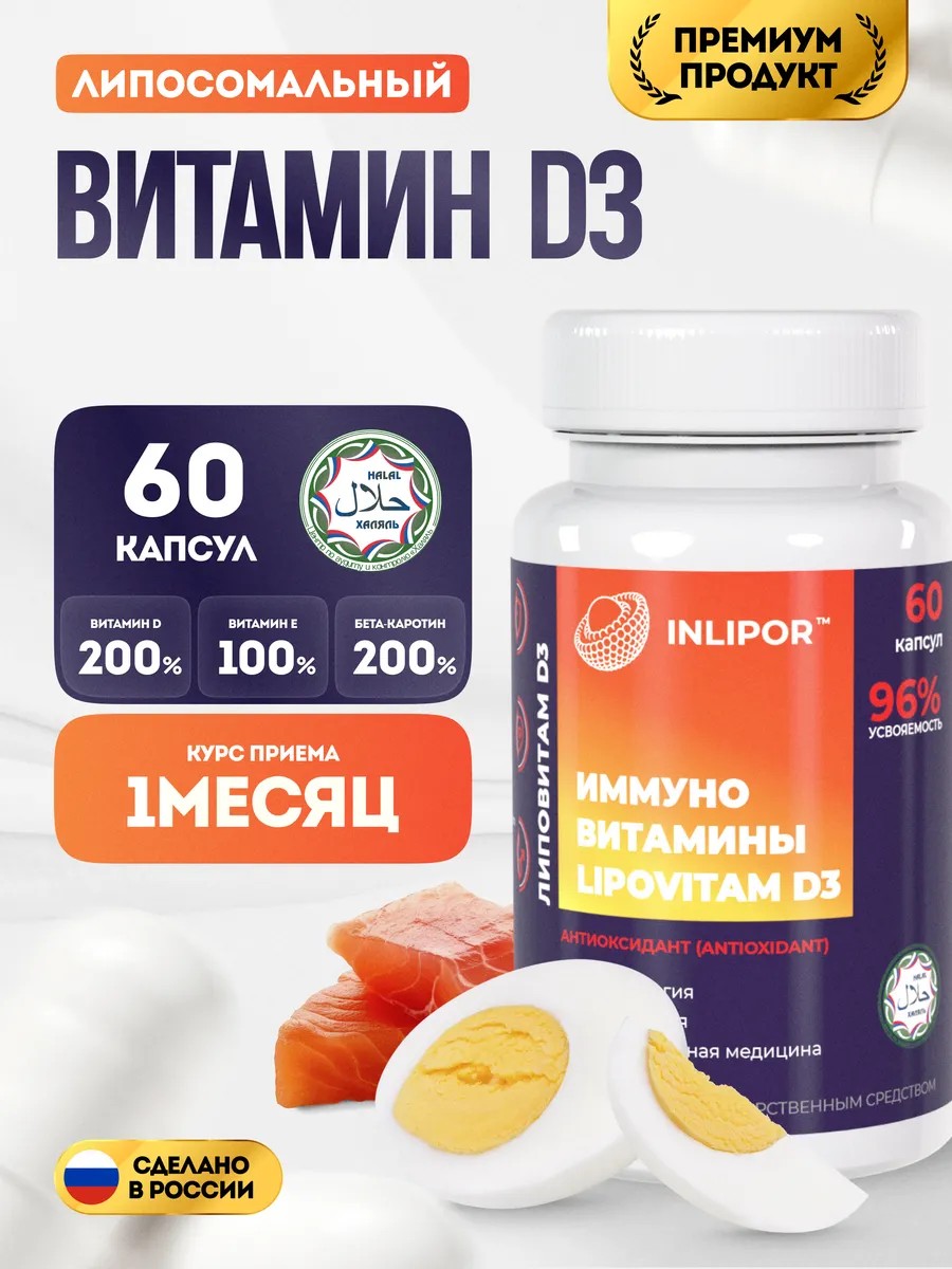 INLIPOR Витамин Д3, БАД для иммунитета, костей, волос, ногтей, кожи
