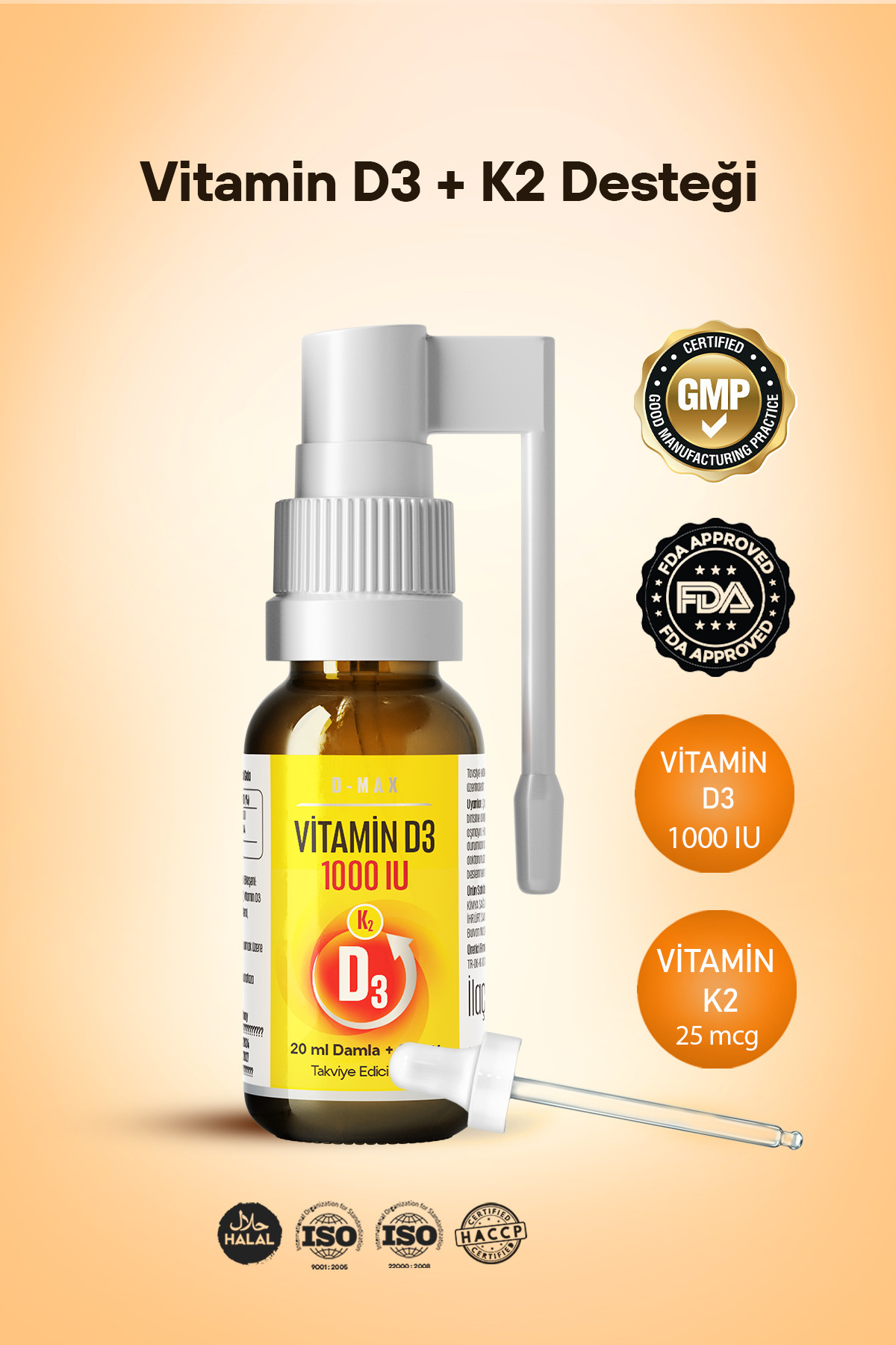 inMAX D-Max Plus Vitamin D3 + K2 1000 IU (Drops and Spray) Form